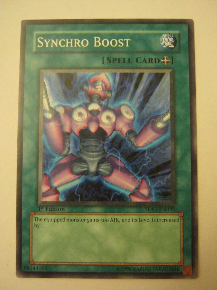 Synchro Boost 5DS1-EN020 Synchron Extreme Yu-Gi-Oh Excellent Condition, pics show both cards Visit My Ebay Store Brian's Variety for more items like this Store Volume Discounts from shipping (unless otherwise stated), 2-5 items, 5%... 6 or more items, 10%. (To get this you must let me invoice you before paying.) BUY MORE AND SAVE ON SHIPPING, PLUS DISCOUNTS!!! Interested in more items like this? Check out my "Trading Card Room" in My Ebay Store: "Brian's Variety" Your Cards Shipping Notes, Please Read PLEASE NOTE: Any shipping charges posted are for domestic rates (US), Items are shipped USPS first class so you get a tracking number. If international, please check shipping charges, or let me invoice you before payment Early in 2022 The USPS raised their fees. I weigh each item to try to give you the cheapest shipping costs possible. This applies to all Items I sell, from baseball cards to Beanie Babies to anything else. I charge the least amount I possibly can for shipping (also, we don't get shipping supplies (bubblewrap, padded envelopes, tape etc) for free) (no d-2) (.00) 12/7/16 579---6/26/21 11/19/22