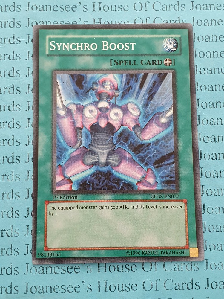 This is a Common Spell Synchro Boost Card text: The equipped monster gains 500 ATK, and its Level is increased by 1. 5DS2 -EN032 1st Edition English Mint/NMint Condition Totally Original Konami (or your money back!) I will deliver in safe packaging to keep it in perfect condition. Ideal for players and collectors alike. Check out my other items! I will combine postage costs for multiple purchases. Sign up for my email newsletters by adding my eBay Shop to your favourites