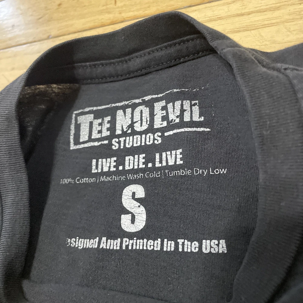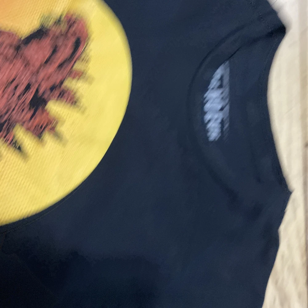 Great pre-owned shirt; some normal wear from washing pictured; the is one hole on the back pictured; great overall condition. We ship quickly. If you have any issue please contact us ~~ Please check size and pictures before you buy black red orange Camera lighting makes capturing the color hue subjective. Please use your best judgements, and ask us any additional questions if you are unsure. We do our best to capture the precise color and essence of each item, but sometimes this is a challenge. Thank you!