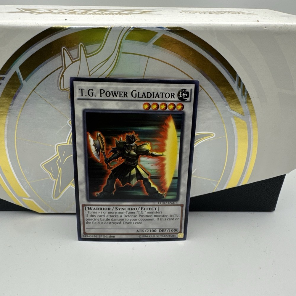 The T.G. Power Gladiator LC5D-EN214 Common card from the Yu-Gi-Oh! TCG is a sought-after collectible featuring a Dragon theme. Manufactured by KONAMI in the United States, this English language card is part of the Legendary Collection 5D's. With a near mint or better condition, this card is a valuable addition to any collector's deck.