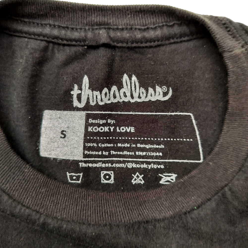 THREADLESS KOOKY LOVE t SHIRT Black Sz Small Godzilla Anime Japan Graphic T Embrace your love for anime with the Threadless Kooky Love T-Shirt, featuring a unique Godzilla graphic that adds a touch of whimsy to your wardrobe. This black, short-sleeved tee is a perfect blend of style and comfort, tailored to fit a size small. Crafted for the anime enthusiast, this shirt boasts a regular fit that ensures ease of movement and a relaxed feel. Ideal for casual outings or anime conventions, it's a versatile addition to any man's clothing collection. Excellent Condition, No Stains or Tears see photos Please see photos for Approximate Measurements Nonsmoking Household All shipping is next business day and I do allow for combined shipping Please contact me if you have any questions Thank you for shopping!