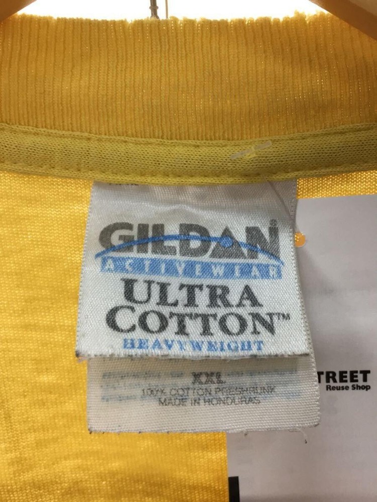 Warm greetings from Japan. Thank you very much for visiting our listing. This is Gildan Mothra vs. Godzilla/2000S/TOHO. Color: Yellow. Material and fabric: cotton. Display Size: XXL. Actual size: [T-shirt] Shoulder width: 67 / Length: 72 / Width: 68 / Sleeve length: 23. There is a small hole on the shoulder and damage around the neck. There is also some wear and tear such as dirt due to age, but it can still be used. Please inspect pictures for condition reference. We update our inventory every 24 hours, However, some items may sell locally in between and we may need to cancel the order. Please confirm availability before buying. CAUTION: Import TAXES (VAT),and duties are responsibility of buyers.