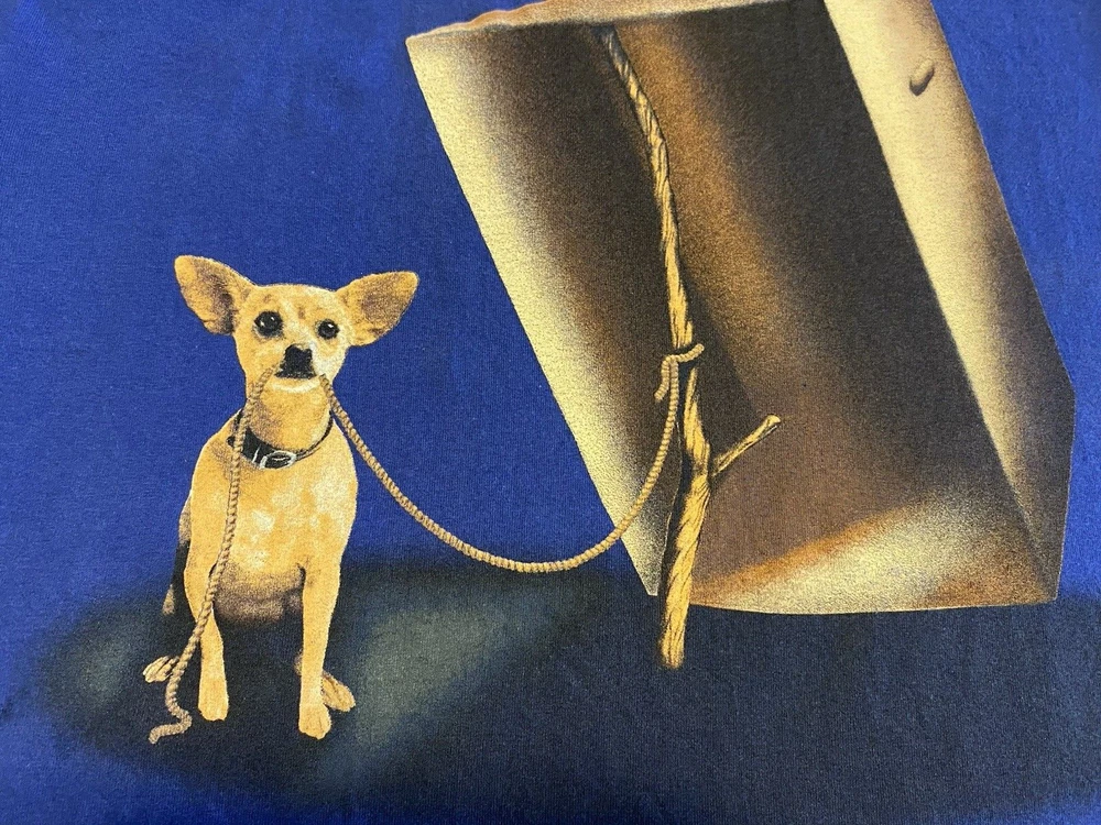 Taco Bell Godzilla 1998 T-Shirt Rare Blue Size L Here Lizard Lizard Lizard Promo Release Chihuahua Clean, preowned condition with overall even fade and light wear to prints; see all photos.