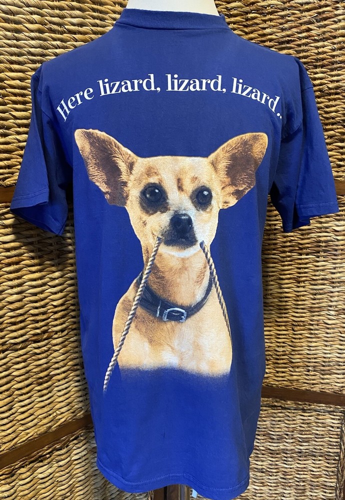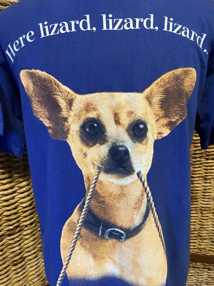 Taco Bell Godzilla 1998 T-Shirt Rare Blue Size L Here Lizard Lizard Lizard Promo Release Chihuahua Clean, preowned condition with overall even fade and light wear to prints; see all photos....