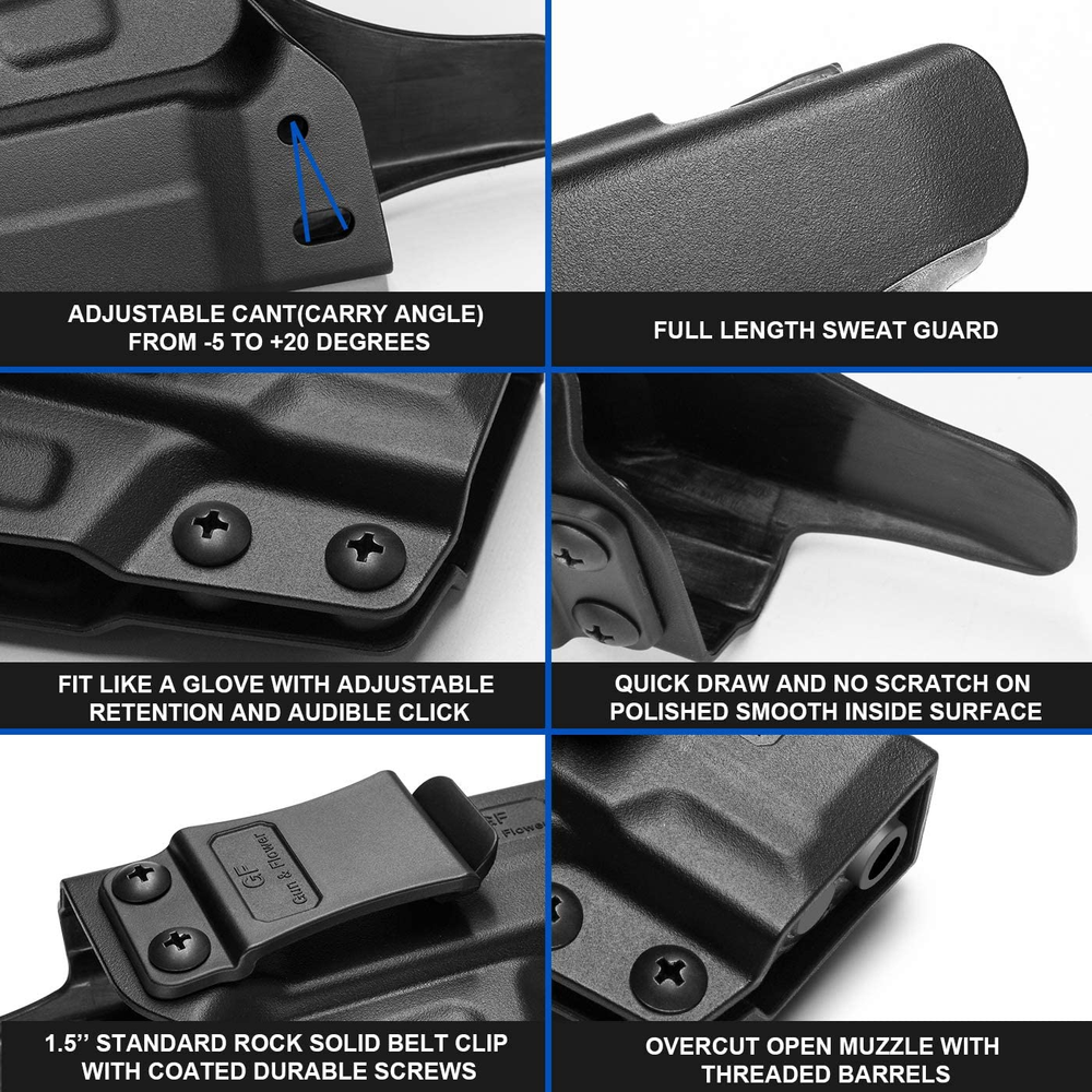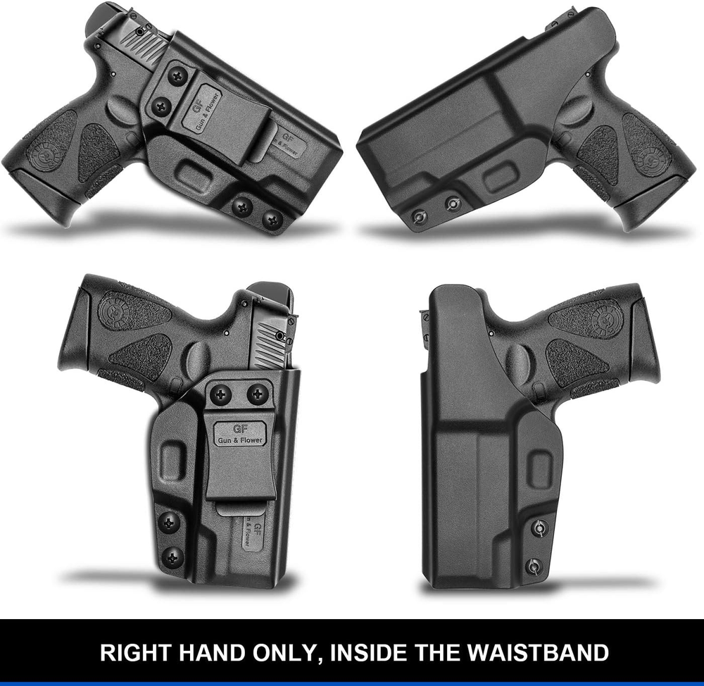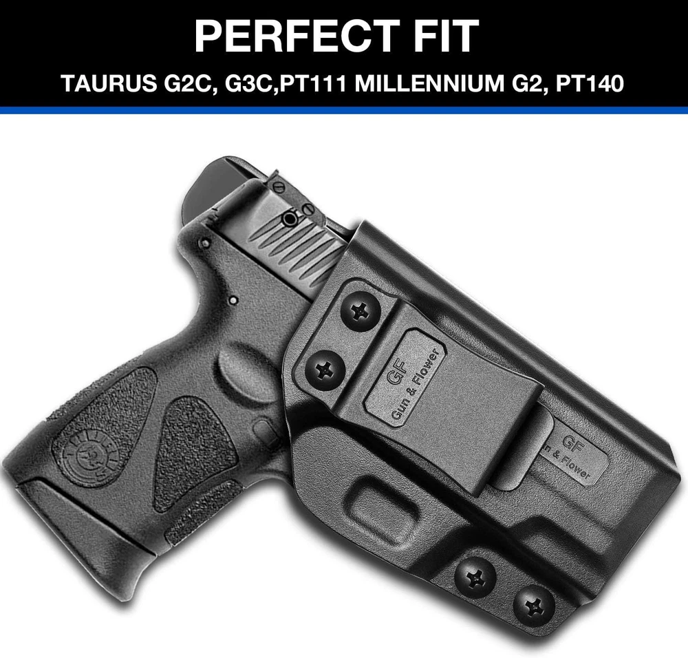 【FINE CRAFTSMANSHIP】Lives can be saved, and that is what drives our craftsmen to make sure every holster is reliable in quality, durability, comfort and fit for actual combat and daily carry. 【Taurus G2C HOLSTER, Taurus G3C Holster, PT111 Millennium G2, PT140 Millennium G2】This G2C Taurus holster is tailor-made and also compatible for Taurus G3C, PT111 Millennium G2, PT140. Inside waistband polymer holsters for concealed carry your handgun. Please note these holsters are not fit for any attachment like laser or light accessories. 【TRIGGER GUARD COVER, NO RISK of PRESSING MAG RELEASE】Our precise Aluminum molds designed by our CAD engineers ensure exceptional consistency and accuracy of holsters, covering all access to the trigger, and uncovering mag release saving the trouble and danger of pressing it accidentally by pressure from holster. 【FIT LIKE A GLOVE WITH AN AUDIBLE CLICK】Provide secure retention with tension-adjustment screws. A handful of grip makes your drawing and pulling quick and smooth without any scratch on slide. 【ANGLE THE WAY YOU WANT WITH -5 TO 20 DEGREES ADJUSTABLE CANT】1.5'' BELT CLIPS are rock, solid with hook at bottom and they will fit tight on your belt and stay when drawing. Cant is adjustable from -5 to 20 degrees, allowing you to angle the holster perfectly for appendix (AIWB), strong side, behind the hip or cross draw. All the edges are polished and smooth to make you feel comfortable when it’s again the skin. 【LIFETIME WARRANTY】No questions asked return policy and Lifetime Warranty. If for any reason you are unsatisfied, please feel free to contact our 24/7 Customer Services, we stand behind the quality of our work! Product Description A good holster saves lives, and that is exactly what drives our engineer to put energy into offering first-class holsters. 1. COVER ALL ACCESS TO THE TRIGGER No risk of accidental discharges, covering all access to the trigger. 2. NO RISK OF PRESSING MAGAZINE RELEASE Uncover mag release saving the trouble and danger of pressing it accidentally by pressure from holster. 3. AUDIBLE CLICK AND SECURE RETENTION Audible click sound ensures your firearm is safe and secure every time you reholster. 4. One-HANDED DRAW WITH 1.5'' ROCK SOLID BELT CLIP Fit tight on your belt and stay when drawing and reholstering. 5. ADJUSTABLE CANT FROM -5 to +20 DEGREES For Appendix Carry (AIWB), Hip, Carry, Back Carry, Cross Draw 6. FULL LENGTH SWEAT GUARD The sweat shield runs all the way to the end of the slide 7. POLISHED EDGE AND INSIDE-SMOOTH SURFACE Fully Covered Trigger The trigger guard is fully enclosed and protected against accidental discharges. There is no risk of activating the trigger by accident. It’s tailored for Taurus G2C, G3C, PT111 Millennium G2, PT140. Smooth Inside, Hand-Polished Edge Everytime you draw and reholster, the inside-smooth surface reduces friction and protects slide from scratch. Every of our holsters is polished on the edges by hands to make you feel comfortable when it’s again your skin. Adjustable Cant From -5 to 20 Degrees This slight adjustment from -5 to 20 degrees will help angle your holster perfectly for Apprndix(AIWB), Strong Side, Behind The Hip or Cross Draw. Fit Like A Glove It’s tailor-made for Taurus G2C, G3C, PT111 Millennium G2, PT140. You can adjust the retention with phillips screwdriver. Full Length Sweat Guard The Sweat Shield runs all the way down to the end of the slide, protecting firearm from constant skin/sweat exposure. Holster Size L x W x H = 6.4’’ x 3.0’’ x 1.8’’ Please note these holsters are not fit for any attachment like laser/light accessories.