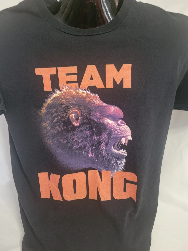 Team Kong Godzilla vs Kong Black T-shirt (Size L) & (Pre-owned). Port & Company Tag. The t-shirt is double-sided. 100% Cotton Chest Width: 22" approximately Shoulder to Hem: 29" approximately Smoke Free Home *Please read entire description & see all pictures before making the purchase*Be considerate on offers and no low ball offers*Sold As Is* BIN X