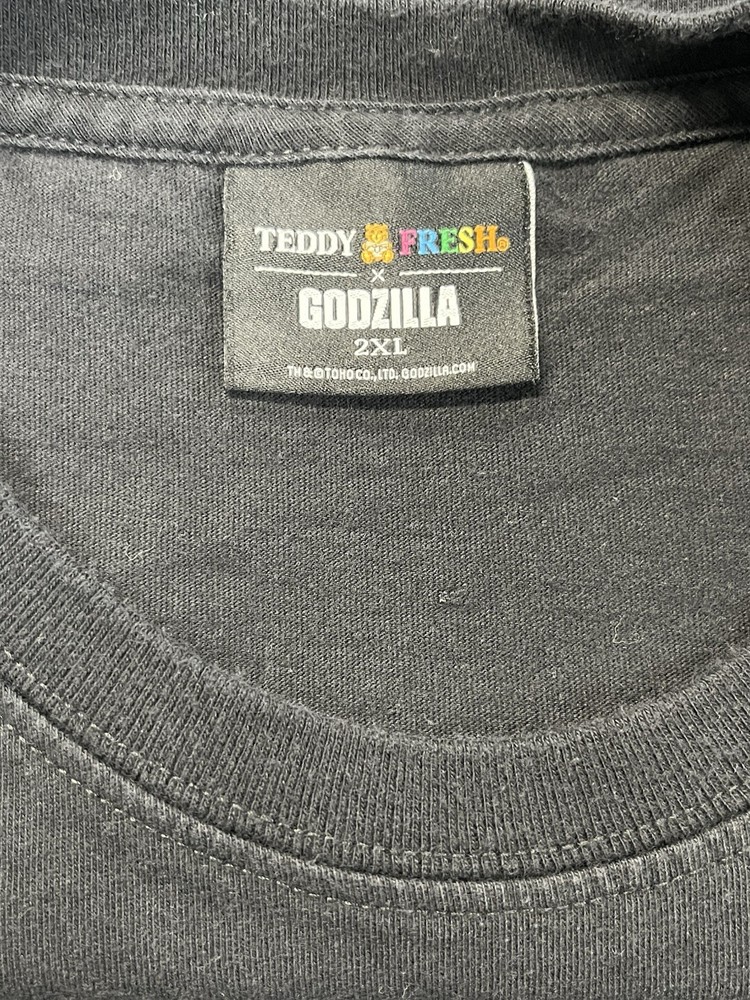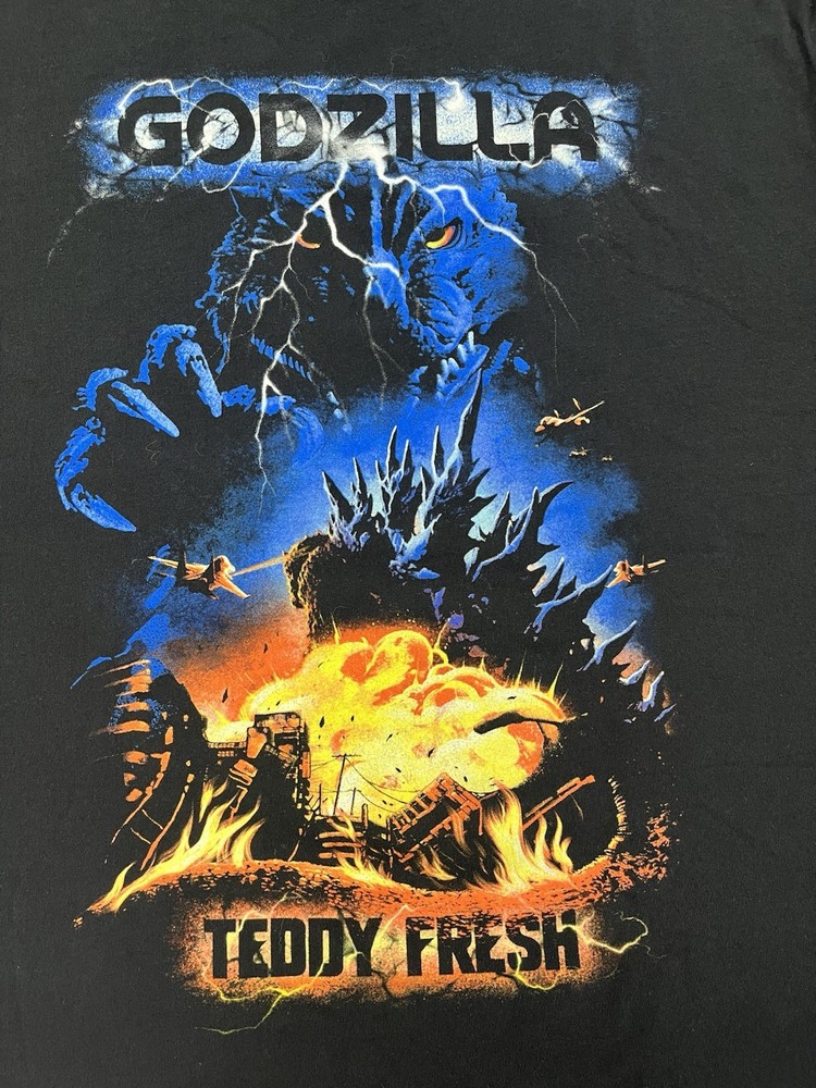 Elevate your wardrobe with the Teddy Fresh X Godzilla collaboration T-shirt, a must-have for fans of the iconic King of Monsters. This black crew neck tee, sized 2XL for a comfortable fit, features a striking graphic of Godzilla, blending your love for designer fashion with a touch of nostalgia. Crafted with 100% Cotton fabric, this T-shirt offers all-season comfort. T-Shirt has been worn, great condition. No rips, or stains. Stitching still strong.