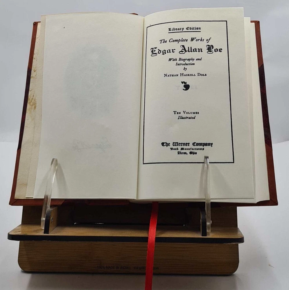About the Book: Complete Title: The Complete Works of Edgar Allan Poe Volume 1 1908 [Leather Bound] Author: Edgar Allan Poe Edition: Reprinted by Gyan Books in 2021 with the help of original edition published long back [1908] . Language: English No. Of Pages: 406 Volume: Volume 1 Binding: HALF LEATHER binding features a leather spine and corners with the remaining cover in Raxine or Marble Paper. CHOOSE ANY LEATHER COLOR OF YOUR CHOICE WITHOUT ANY EXTRA CHARGES JUST CLICK ON IMAGES FOR OPTIONAL COLORS AND INFORM US YOUR CHOICE THROUGH MAIL WITH COLOR CODE. Customization Options Available Upon Request We provide 'Extra customization*' on request with additional charges. Please note that customization charges are applied in addition to the listed item (Book) price. Customization Extra Charges Sample Image FULL LEATHER BOUND WITH GILDED EDGES (ANY COLOR) USD 35 MULTI-COLOR LABELS (Spine) USD 12 PERSONALIZED IMAGE EMBOSSING ON THE FRONT COVER USD 40 FOLIO EDITION (12x18.5 inches) BIGGER SIZE Six times of the given price Points to note before booking order: SPECIAL DISCOUNT FOR BULK ORDERS PLEASE CONTACT US. UNIQUE LEATHER-BOUND Edition on Spine and Corners along with Golden Leaf Printing on Round Spine. This book is: Printed in Black & White (If a color edition is available you may request it by mail for a nominal charge.) Sewed binding for longer life Printed on high quality Natural Shade Acid Free Paper Professionally processed without changing its content Genuine Leather is being used for Binding Handcrafted Golden Leaf Printing. Round Spine Handmade Marble paper use for end paper Raise bands Bookmark Ribbon As these are old books each page is processed manually to make them readable. But in case some pages are blur or missing or have black spots the same are re-printed as it is to keep the authenticity of the book. In case of multi volume sets please note that the above listing is for a single volume only. (To order multiple volumes please contact us separately). We request you to understand that these leather-bound books are work of art and hence require time to go through different process to be the masterpieces that they are. We usually take 20 business days as handling time to dispatch shipment. We consider special request for a special occasion. Craftsman based in India prepared this book and shipped from different stock locations around the Globe. PRODUCT DISCLAIMER: Please be aware that because leather is a natural material slight discoloration or change in texture may be visible. ABOUT US GYAN BOOKS INTRODUCING A REMARKABLE LEATHER-BOUND EDITION, METICULOUSLY CRAFTED BY THE ESTEEMED INSTITUTION: RARE BIBLIO A UNIQUE LEATHER-BOUND BOOK FOR ELITE READERS/COLLECTORS OF OLD RARE AND BESTSELLING BOOKS. An ORIGINAL LEATHER is being used for Binding this Book on SPINE AND CORNERS along with GOLDEN LEAF PRINTING {Half Leather}. We deal into reprinting of the masterpieces crafted by authors around the world. We are proud to say that we have a collection of over 25 million books and our collection includes books that are as old as 200 years and hence are considered as RARE BOOKS. We are pioneer in this field having experience of 40 years. We also undertake printing and Leather Binding jobs of other books. Thesis printing and Leather Binding is one of our important services. Many publishers and authors approach us for their books to bind in our unique leather binding format for their special customers. Our craftsmen are active in this job since generations. Restoration of old books is our expertise. We are known by our Customization options. We have many leather color options in our bucket. The whole process is done manually so that it gives you the same feeling of old book.