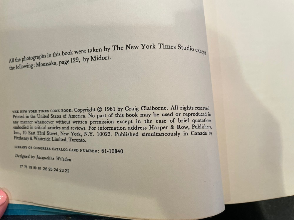 The New York Times Cookbook By Craig Claiborne 1961 Hardcover B&W Photos 717 Pgs. Condition is Acceptable. Shipped with USPS Media Mail....