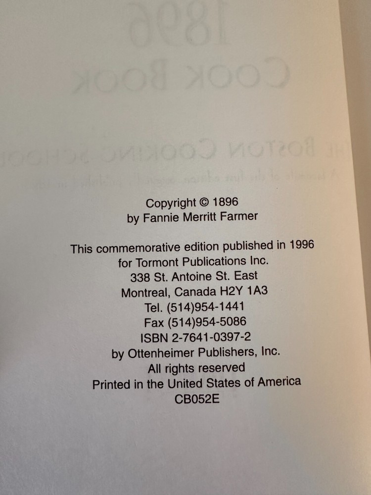 The Original Fannie Farmer 1896 Cook Book Commemorative Edition Hardcover - FREE SHIPPING. Condition is Used.