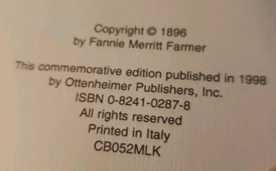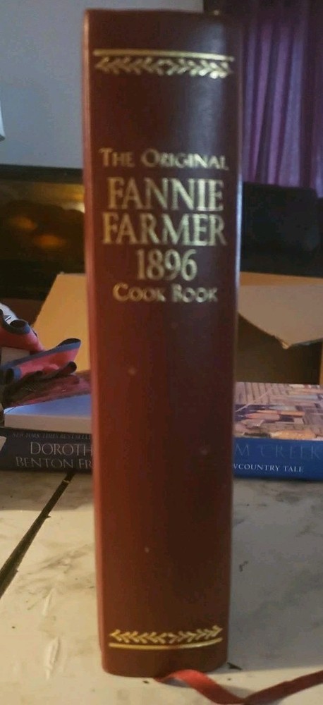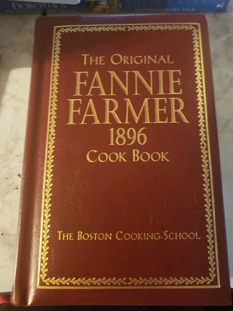 The Original Fannie Farmer 1896 Cookbook: Commemorative Edition 1998 is a beautifully presented hardcover cookbook featuring the classic recipes of Fannie Merritt Farmer. This edition, published by Allan Publishers, Incorporated in Boston, includes 567 pages filled with English language recipes perfect for adults interested in cooking. The faux leather binding adds a touch of elegance to this timeless cookbook, making it a valuable addition to any kitchen or cookbook collection. End pages are all gilt.