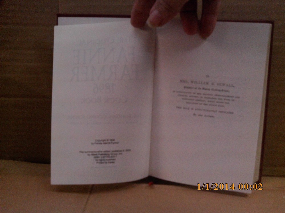 The Original Fannie Farmer 1896 Cook Book; A facsimile of the 1st edition 1896 by the Boston Cooking School...great additions at end such as Pickling, Canning and preserving,recipes to prepare for the sick,hints to the young housekeeper, menus & index... a truly wonderful cookbook! condition: Very Good + - just the Very, very lightest bumping to gilt edges has silk ribbon page marker and ttractive cover with gilt lettering & trim see other exciting cook books in our eBay store will combine shipping within US for $2 each additional book
