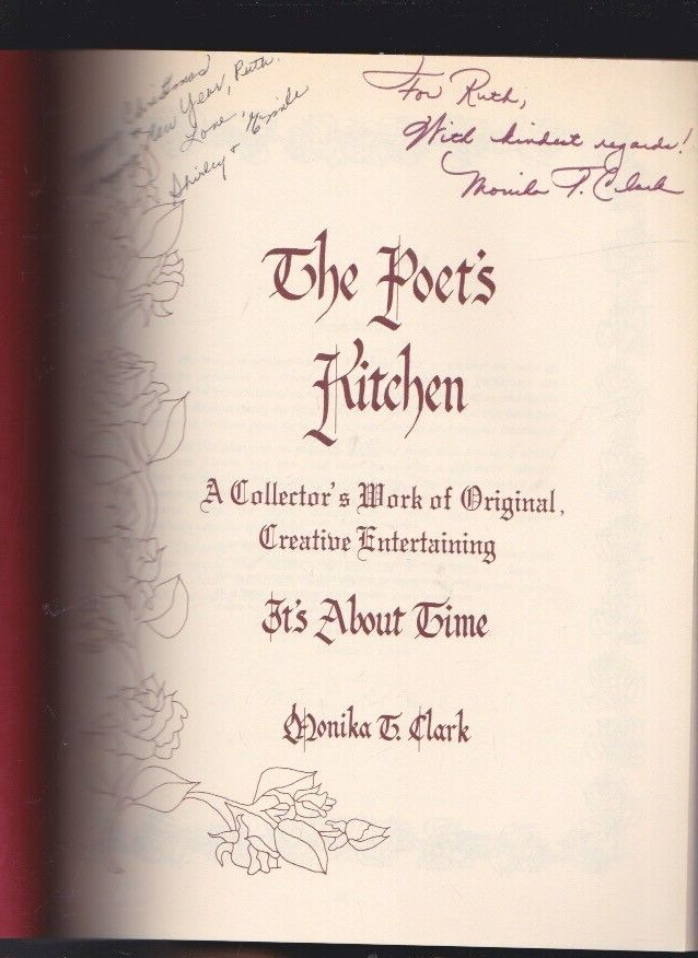 Extremely Rare Out-of-Print Original - SIGNED by the Author with dedication - 1984 First Edition. Pages clean and unmarked. The lightest shelf wear. No crease of the spine. No tanning of the pages. Images on listing, are of this book. LeatherBound_____________ The Poet's Kitchen; A Collector's Work of Original Creative Entertaining - It's About Time