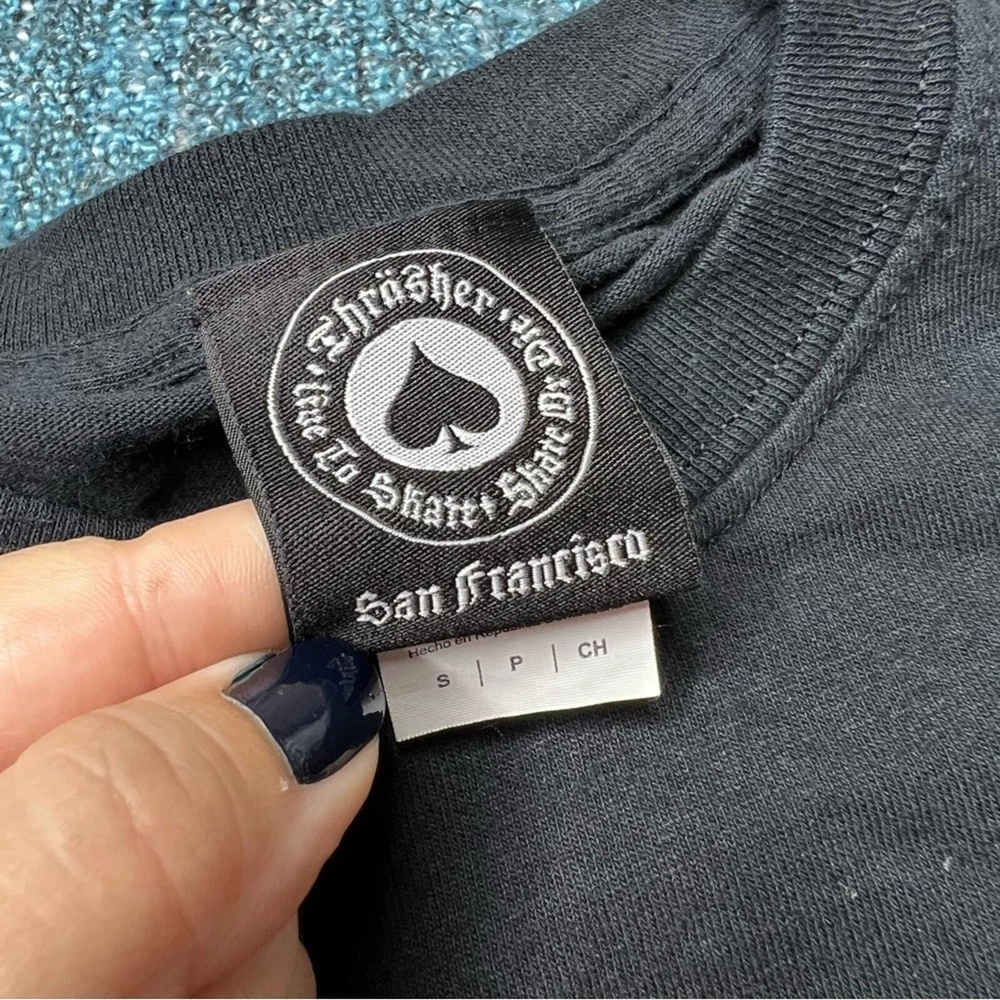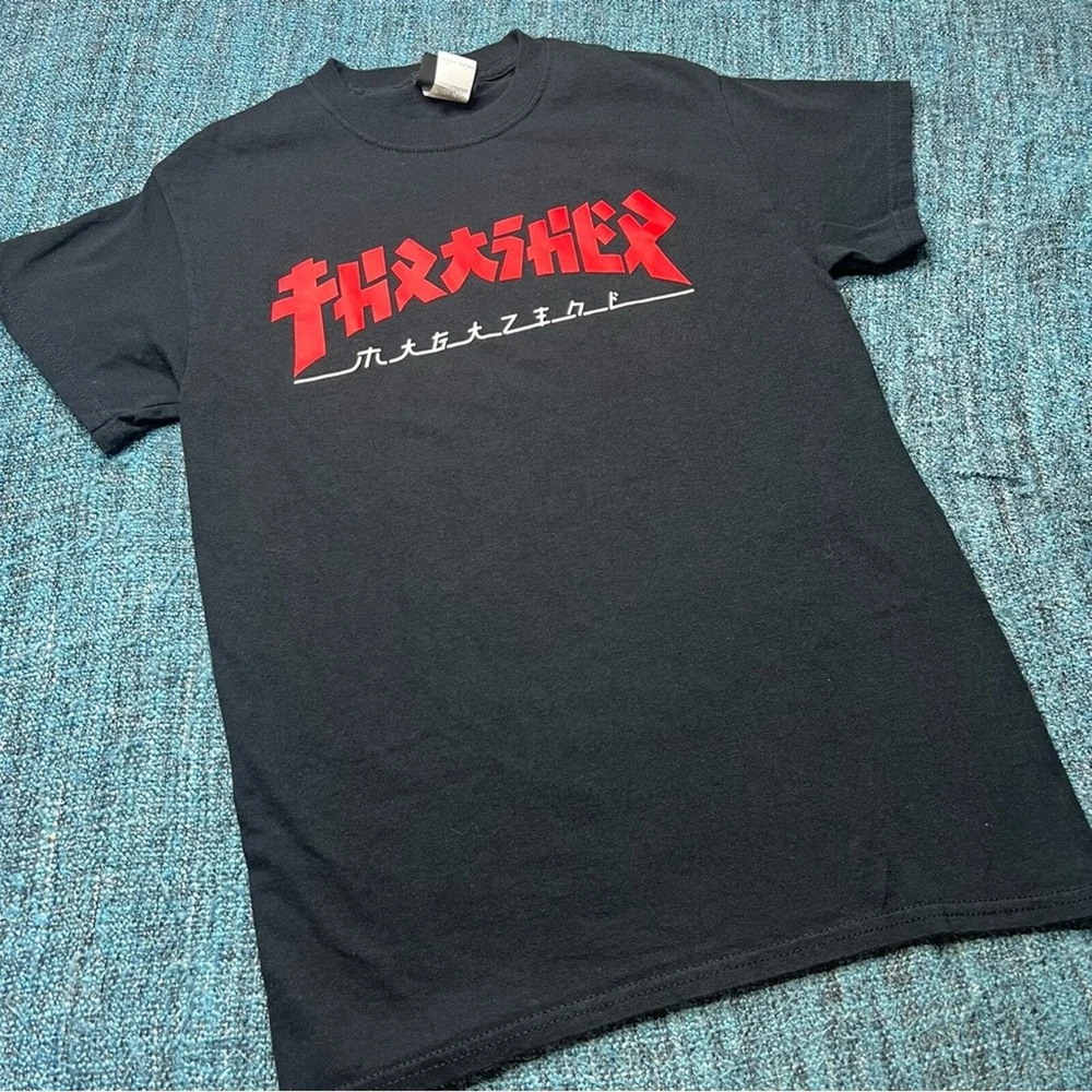 <![CDATA[<div>Brand: Thrasher Style: Japanese Godzilla Magazine Logo Short Sleeve T-Shirt Color: Black/Red/White Size: Men's Small Approx Measurements: pit-pit 17", length 25" Condition: Good pre-owned condition. Inventory: 6458247