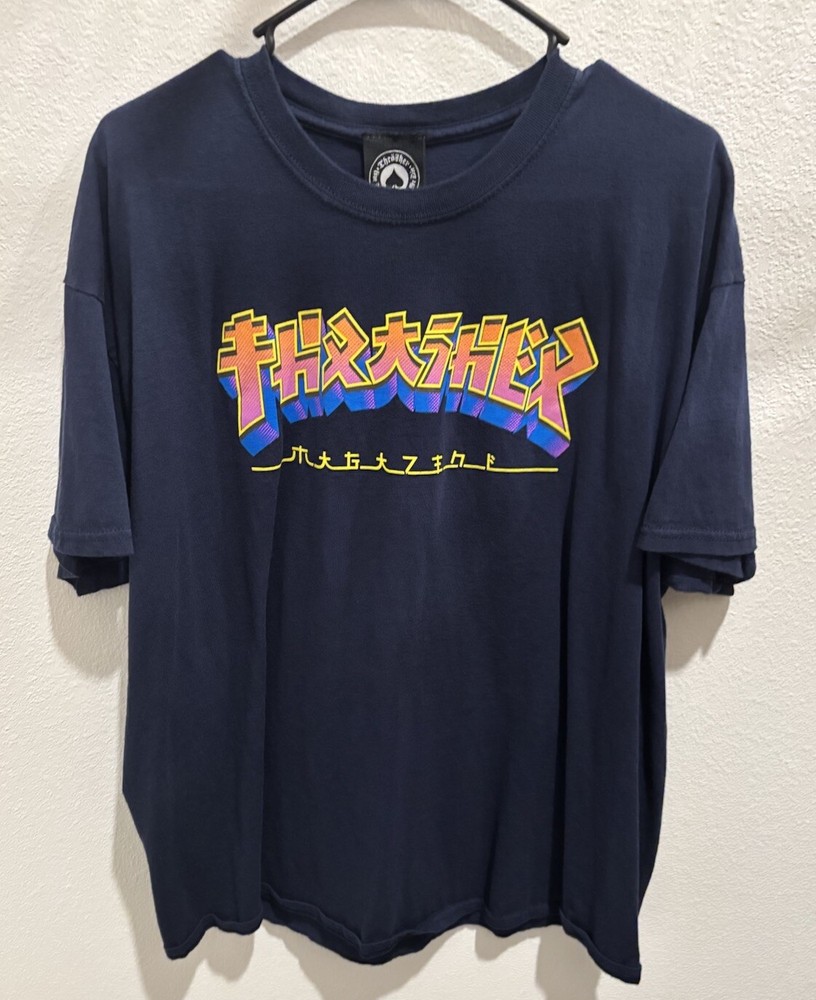 Thrasher Magazine GODZILLA BURST LOGO Skateboard T Shirt NAVY BLUE Size XL...