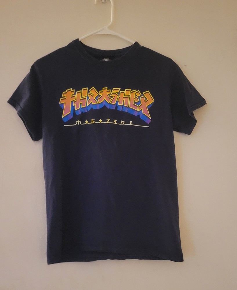 Elevate your wardrobe with the iconic Thrasher Magazine Godzilla Burst Logo T-Shirt in a sleek Navy Blue. This small-sized, regular fit tee boasts a classic crew neck and short sleeves, perfect for a casual yet stylish look. The distinguished graphic print sets this shirt apart, making it an essential piece for any skate-inspired ensemble. previously owned, size small, no flaws. please contact me with any questions or concerns. thanks for looking! Crafted for comfort and durability, this T-shirt is machine washable ensuring easy care. Whether you're hitting the skate park or just out and about, the Thrasher brand guarantees you'll be sporting a piece of streetwear history with a modern twist.