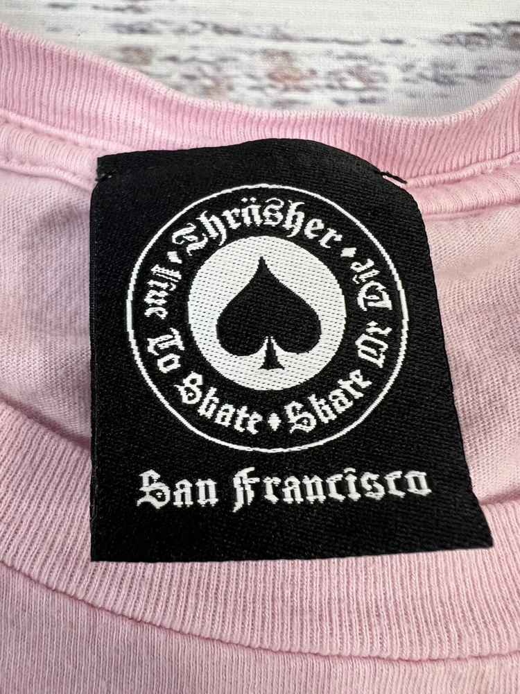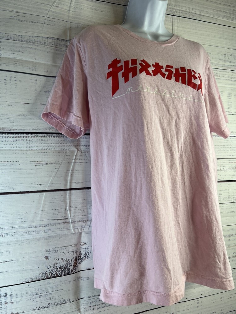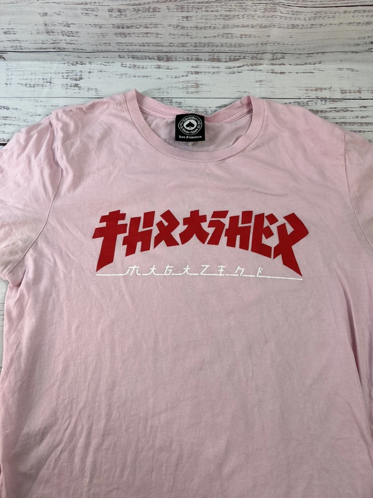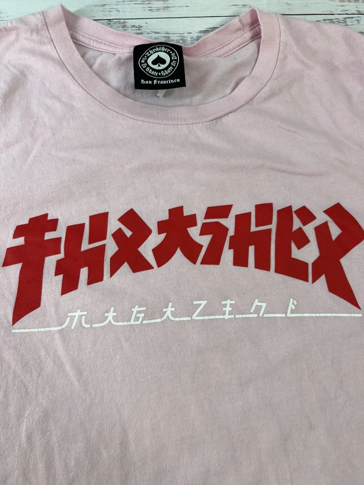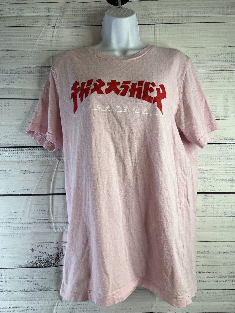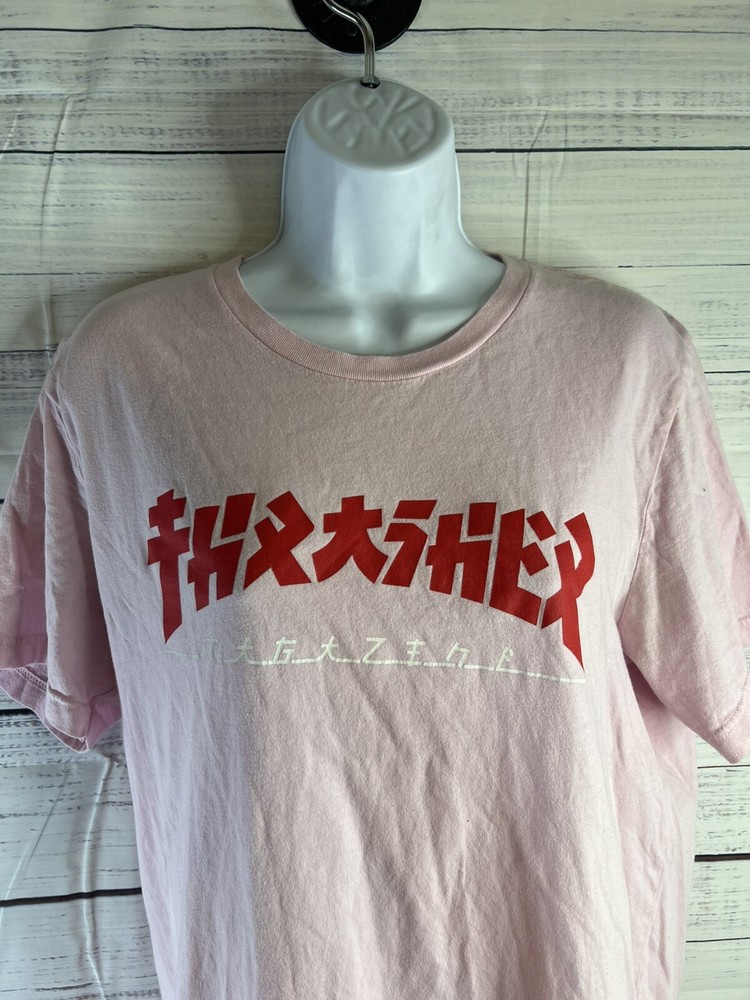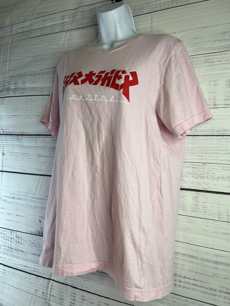The Thrasher Magazine Godzilla Logo Light Pink Women's Skateboard T-Shirt in size L features a vibrant pink color with the iconic Godzilla logo from Thrasher Magazine. This t-shirt is designed for women who enjoy skateboarding and want to express their style with a bold graphic. Made for comfort and style, this t-shirt is a must-have for female skateboarders looking to add a fun and edgy piece to their wardrobe.