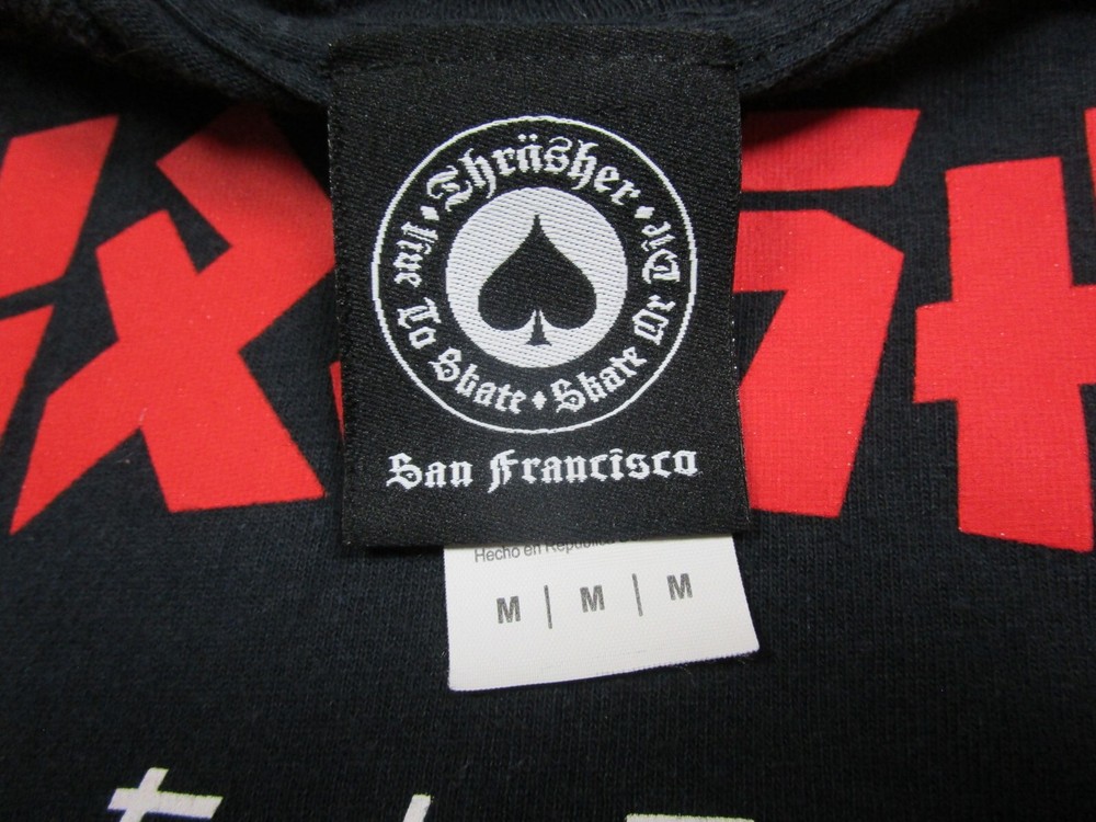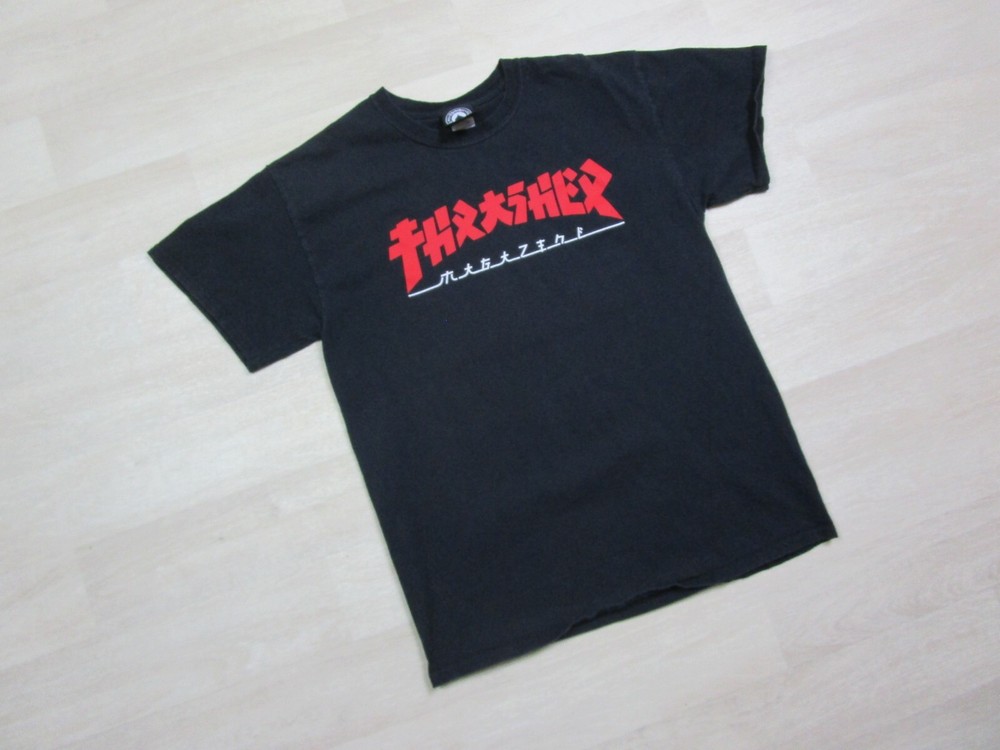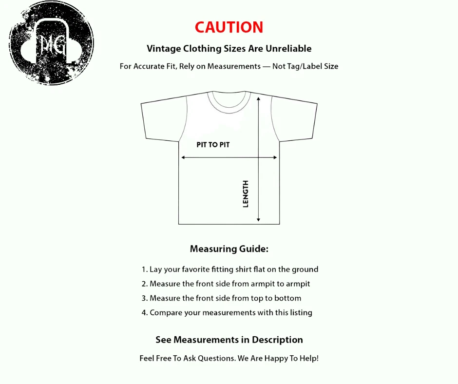 Original Thrasher Skateboard Magazine Logo T Shirt - Preowned with only light signs of wear and fading. Tagged size (M) but be sure to check and compare the measurements below to ensure proper fit. Pit to Pit (underarm): 19" Shoulder to Bottom (total length): 25.5" - 26" MELLOW GUPPY IS AN OHIO BASED (UNITED STATES OF AMERICA) SMALL BUSINESS. FIRST OFF, WE WOULD LIKE TO THANK YOU FOR SUPPORTING US THROUGH THE YEARS! WE TAKE GREAT PRIDE IN EVERY STAGE OF PASSING THESE TREASURED ITEMS FROM OUR HANDS TO YOURS AND DEPEND ON YOUR SATISFACTION TO KEEP GROWING AND MOVING FORWARD. If you are buying VINTAGE please have reasonable expectations. Items that are 20+ years old will most likely show some signs of wear. We do our best to point these out and picture or mention any issues. Cotton tends to shrink over time from things like washing and drying. Also, clothing worn outside and, in the sun, can become faded. In general VINTAGE clothing sizes do run SMALLER in comparison to modern sizing. IN SHORT – PLEASE MEASURE!!! IT’S THE ONLY WAY TO ENSURE PROPER FIT WHEN SHOPPING ONLINE! MEASUREMENTS ARE TAKEN WITH THE ITEM LAID ON A FLAT SURFACE. So please consider this – If you are buying a shirt, take a like minded shirt that fits comfortably (button up, t shirt, etc..) and lay flat then measure. If your measurements are like the ones we provide, PERFECT! We strive to make your buying experience as easy as possible! If you look in the photo section, we demonstrate exactly how we measure using a diagram. Sizes between brands and fabrics always fit a bit differently. This is especially true when it comes to VINTAGE clothing. If you have any questions, or need additional measurements, please ask before purchasing. We are most generally always quick to answer all questions. If you are buying a loved one something VINTAGE as a gift – Please try to get their measurements! Yes, we do accept returns for all the items we offer. We are confident you will love our product and stand behind our practices. We feel it’s the only fair way to do business. We find that returns generally happen for 2 main reasons – Proper fit (clothing) or Expected condition. We spend many extra hours measuring and listing in hopes to avoid any possible issues but understand that sometimes returns are inevitable. The plain truth is sometimes its hard to tell what an item is or isn’t until you see it in person and are able to touch it . PLEASE ASK US QUESTIONS AND VOICE ANY CONCERNS YOU MAY HAVE – WE ARE VERY RESPONSIVE AND FEEL THAT COMMUNICATION IS THE KEY. Finally, yes, we will combine shipping on orders! If you are buying multiple items from the Mellow Guppy store just let us know by message. Once you have made all your selections, we will send you a combined invoice. Once you receive our invoice you can make payment. This will save you money on shipping plus you will receive all your items together in one package. Be sure to give Mellow Guppy a follow and check back from time to time – We are always unearthing buried treasure! We look forward to hearing from you! Thanks -MG