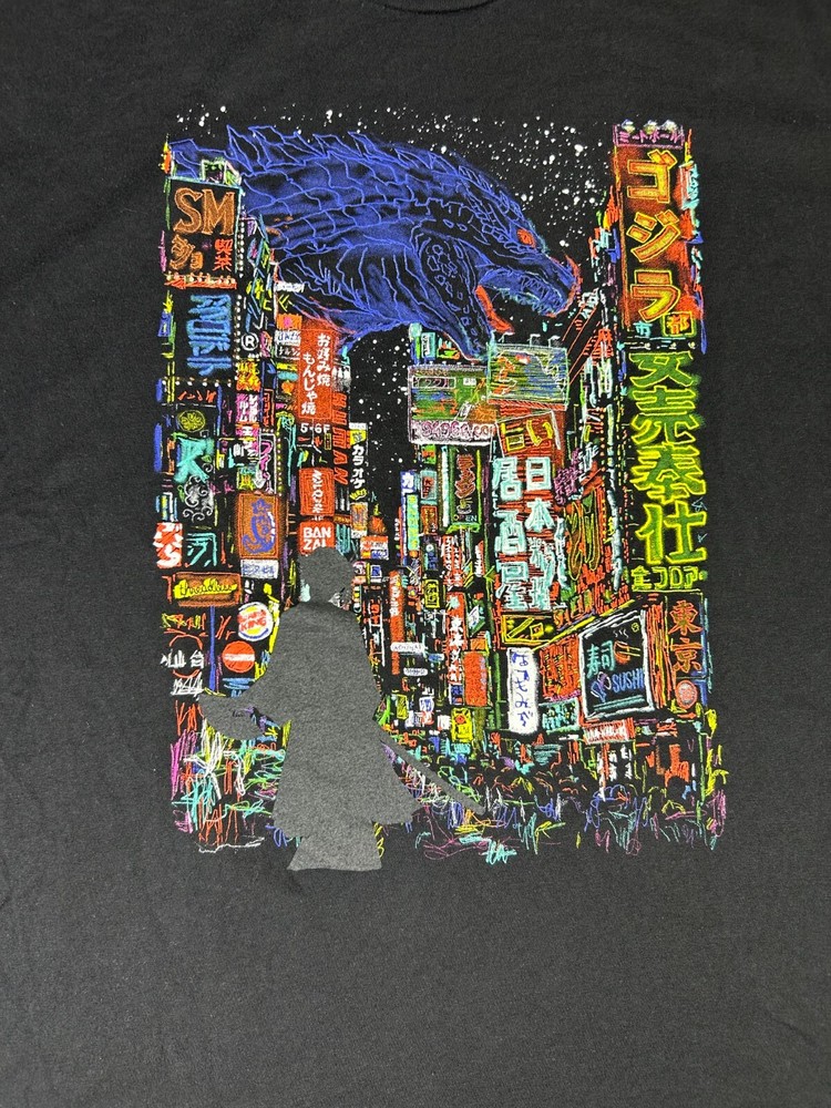 Brand: Threadless Size: XL (Men’s) Material: 100% Cotton Design: Cyberpunk cityscape with a blue Kaiju monster and a silhouetted samurai, vibrant neon colors on black Condition: Pre-owned, in good condition with no visible major flaws All thrifted clothes have been steamed, washed , and or dry cleaned with the utmost care. As always we strive to make every purchase worth it! Feel free to message us with any questions and please go ahead and check out our store! we have many similar items for sale at great prices! Please check the measurements provided if they are provided in photos. Send Us an Offer! :)