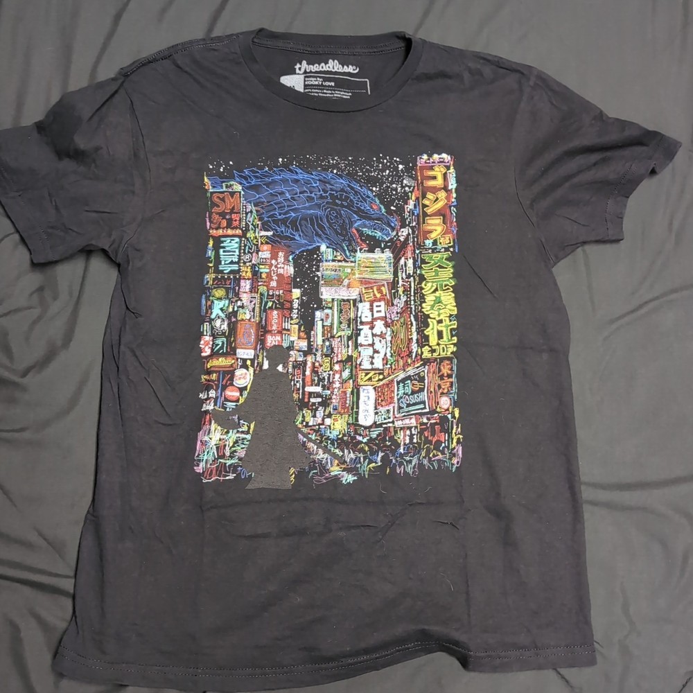 Embrace your unique style with the Threadless Men's T-Shirt, featuring a striking Godzilla Tokyo City print that's sure to make a statement. The shirt is designed for comfort and durability, crafted from soft, breathable cotton that ensures all-day wearability. Its classic black hue provides a versatile base for the eye-catching graphics, making it a perfect addition to your casual wardrobe. Available in a regular size medium, this short-sleeved tee fits true to size, offering a relaxed and flattering fit. It's an ideal choice for those who value both fashion and a nod to classic monster lore. Whether you're out for a casual meetup or just lounging at home, this Threadless shirt brings a touch of kooky charm to any outfit.