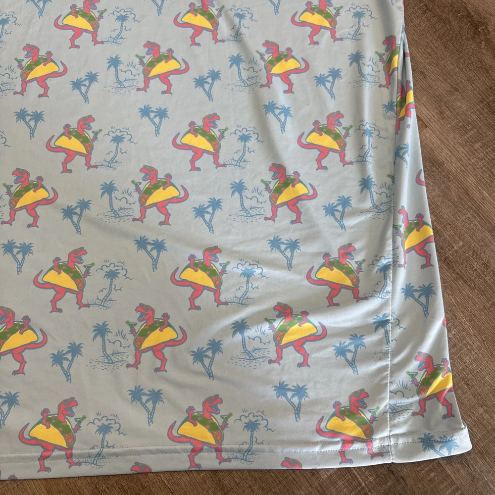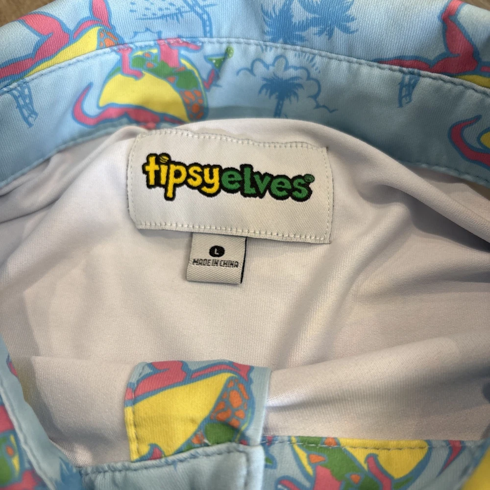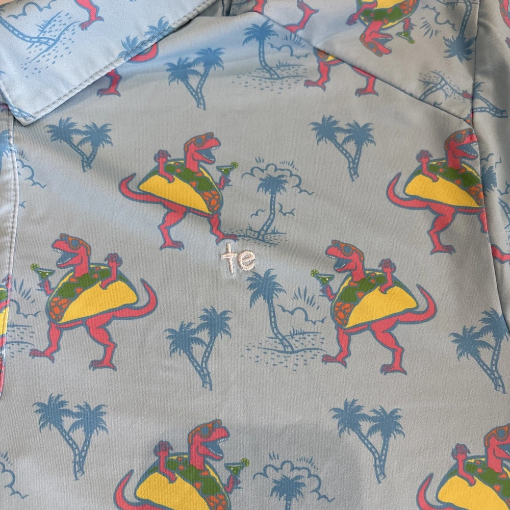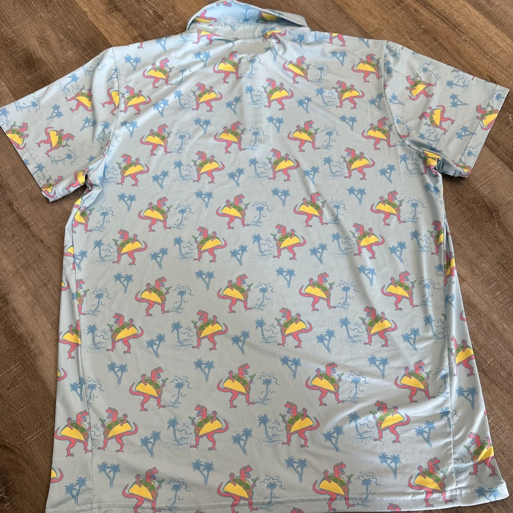 Tipsy Elves Tacosaurus Hawaiian Button-Up Shirt Mens L Taco Dinosaur T-Rex Funny Gently Used. no Rips or Stains. Nice Condition.