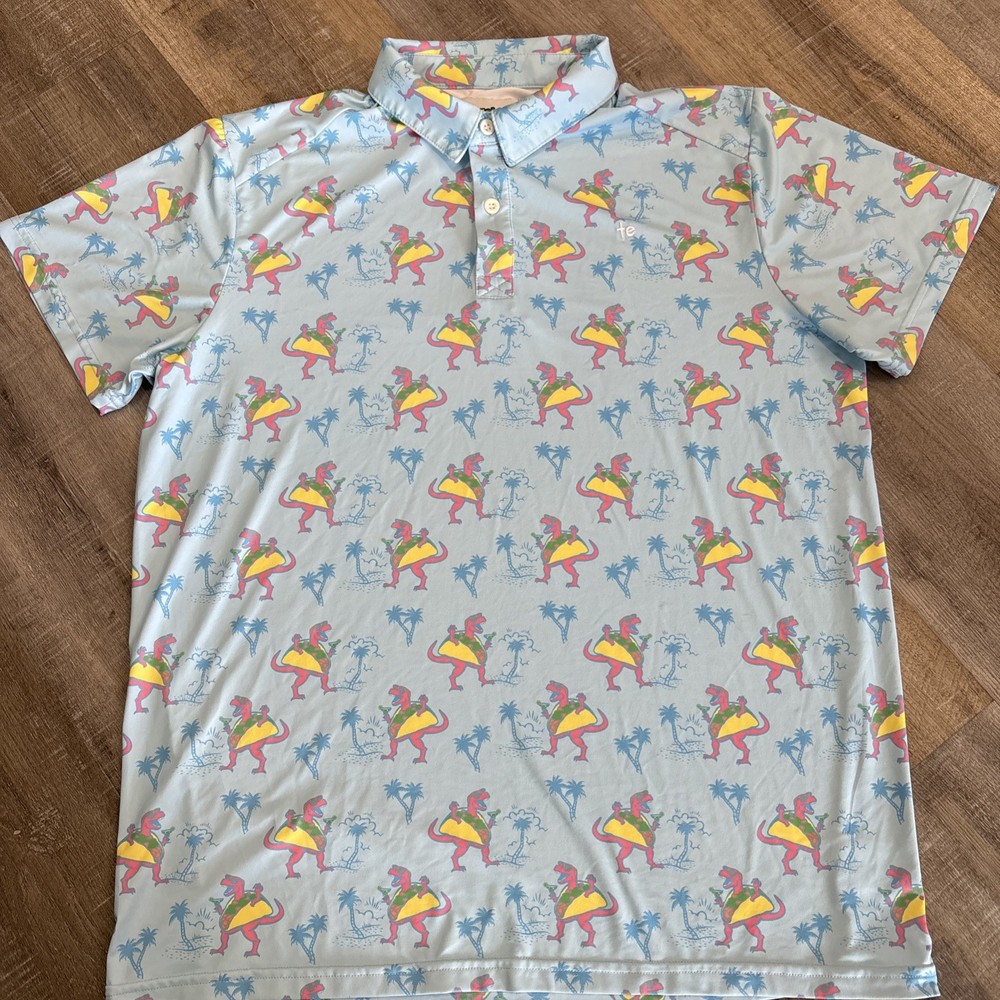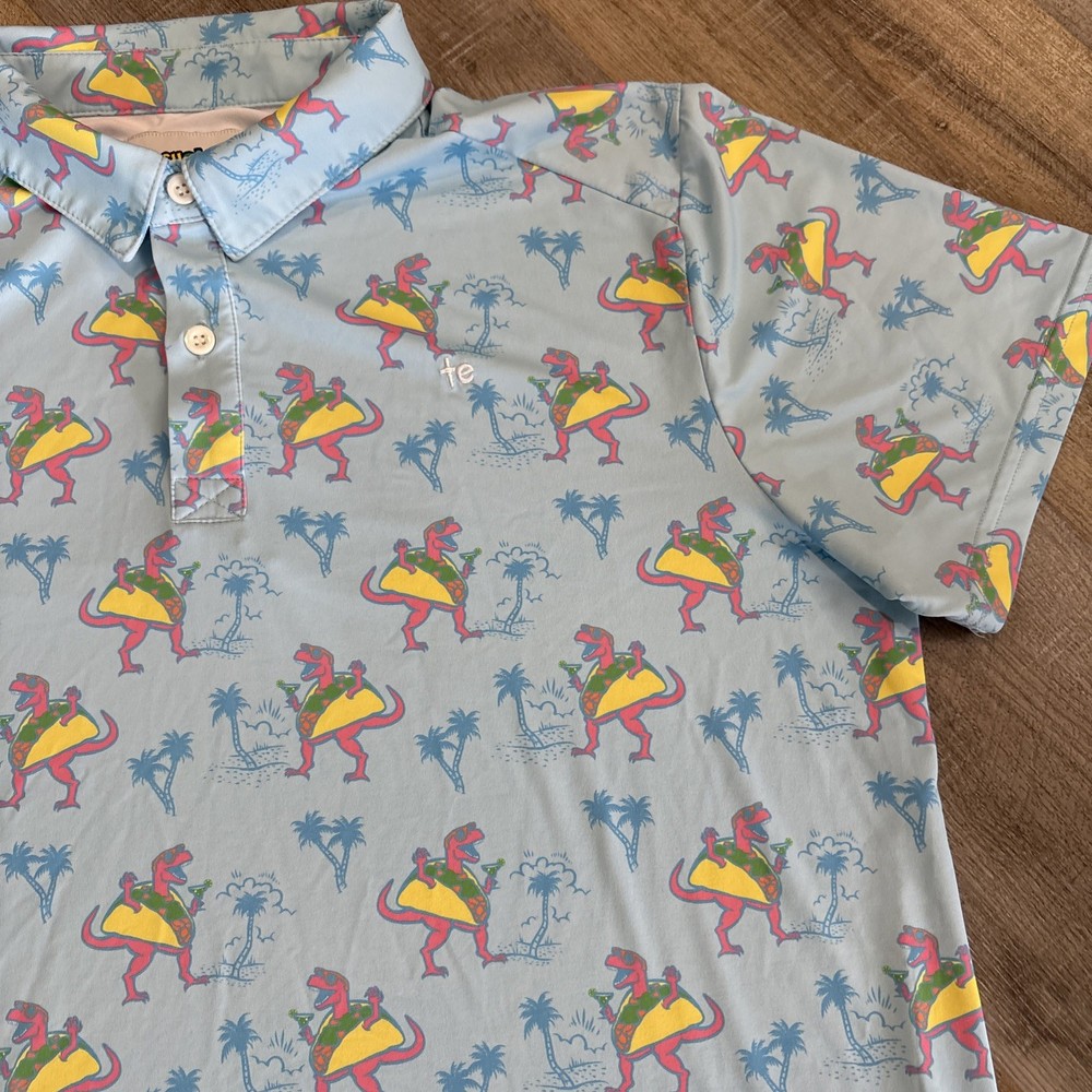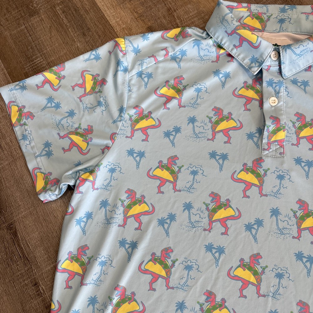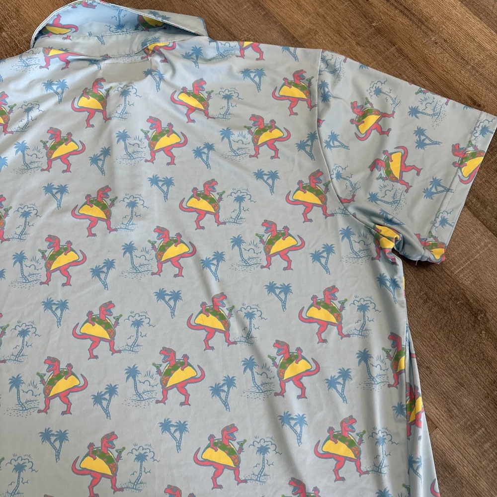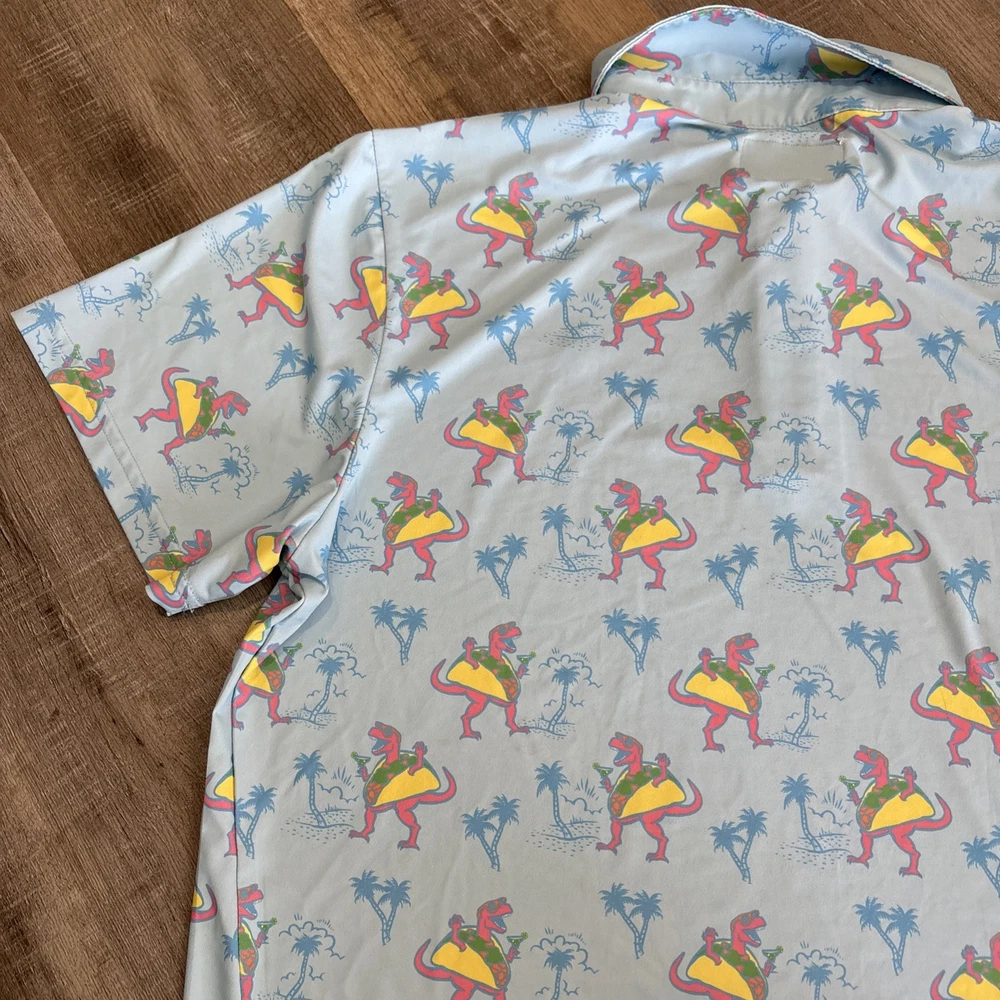 | Features | Breathable, Easy Care, Lightweight, Tacosaurus, Dinosaur, Button-Up, Collar, Short Sleeve |