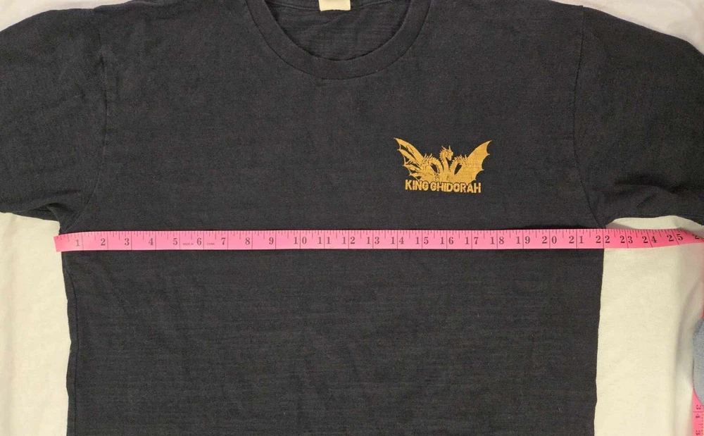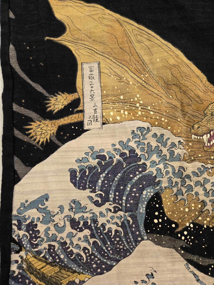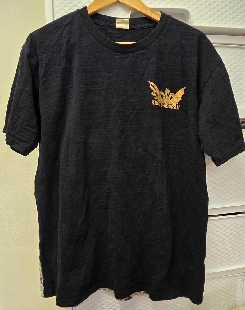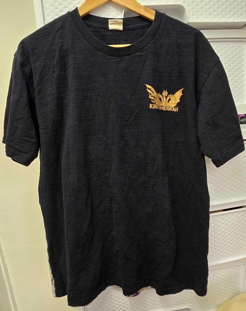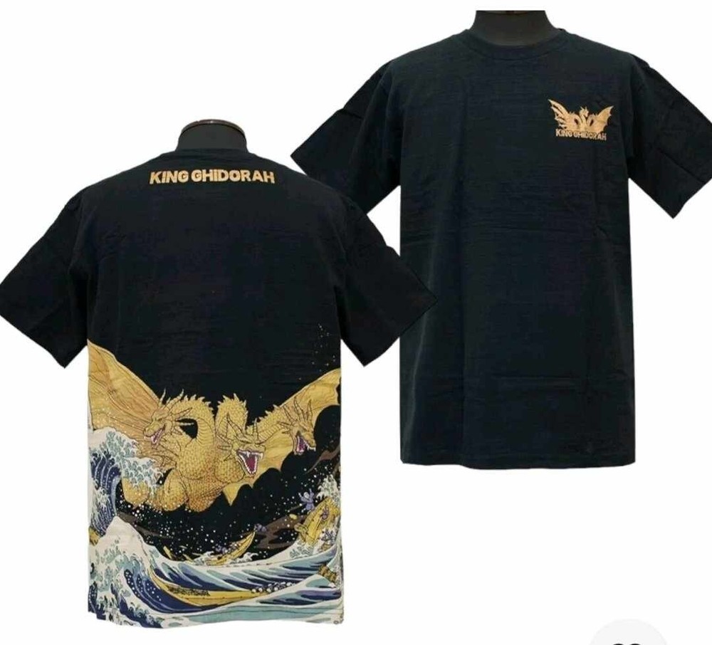 King Ghidorah Godzilla Ukiyo-e Wave T-Shirt XXL TOHO Japan Folcart Hokusai Style Black Authentic licensed Godzilla x King Ghidorah graphic t-shirt featuring a striking ukiyo-e inspired wave print, reminiscent of Hokusai’s iconic Great Wave . Officially produced by Folcart Co., Ltd. for TOHO Studios , this collectible shirt features: Size : XXL (Chest 96–102cm) Color : Black with full back artwork Material : 100% Cotton Style No. : GZ-UT-008 Made in China under Japanese license Condition : very good Front features gold King Ghidorah crest on the chest; back showcases a vivid full-panel print of King Ghidorah rising from stylized waves. A must-have for fans of classic Kaiju, Japanese art mashups, and vintage-style Godzilla apparel. Rare and hard to find, especially in XXL. inv. 126