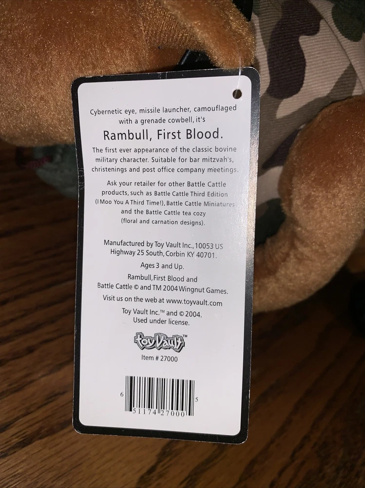 Toy Vault Rambull First Blood Plush With Tags. Condition is Used. Shipped with USPS Ground Advantage....