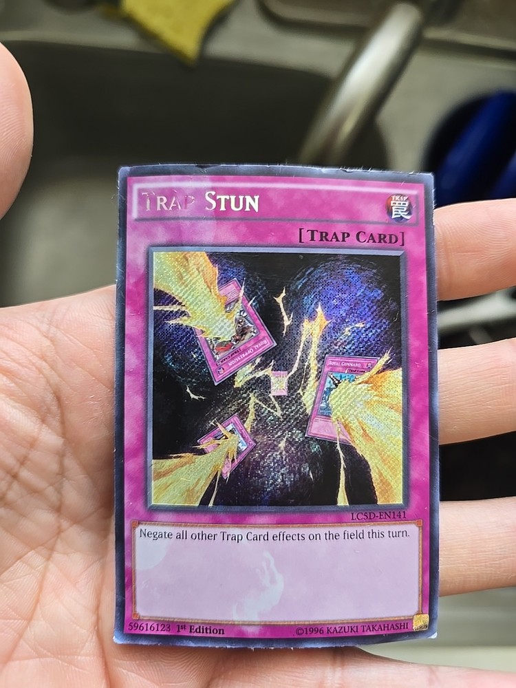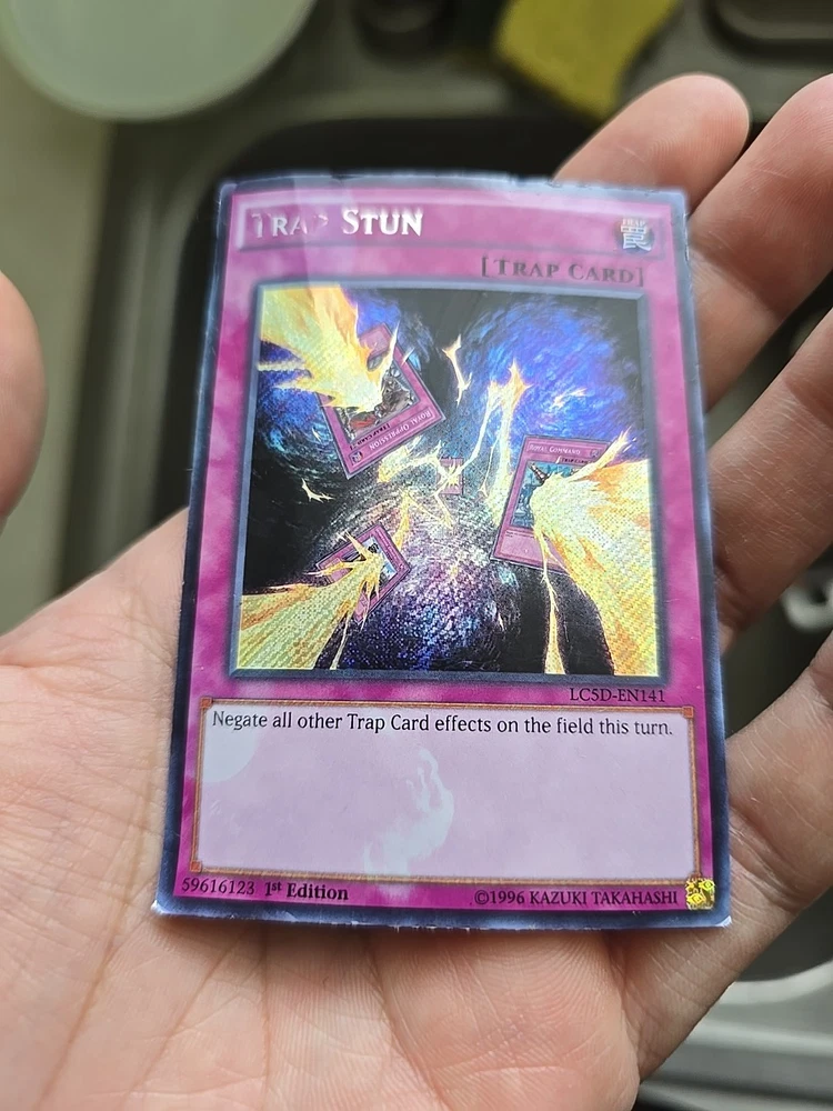 Trap Stun - LC5D-EN141 - Secret Rare - 1st Edition YuGiOh! Damaged. Card is damaged. Has lots of ware and tear. Check pictures