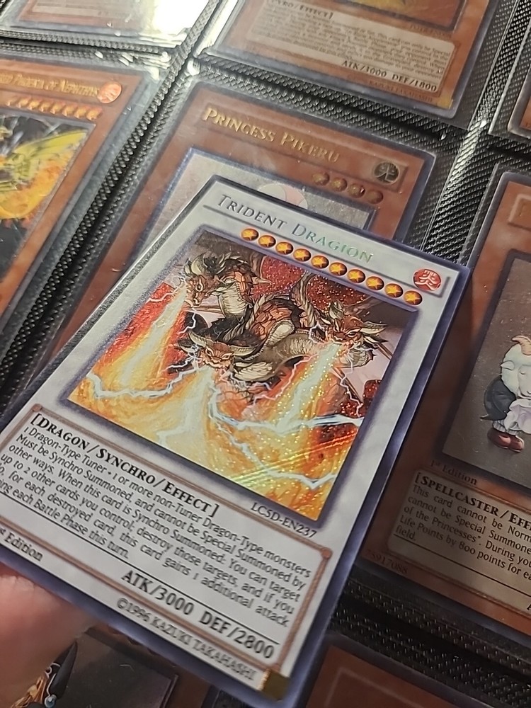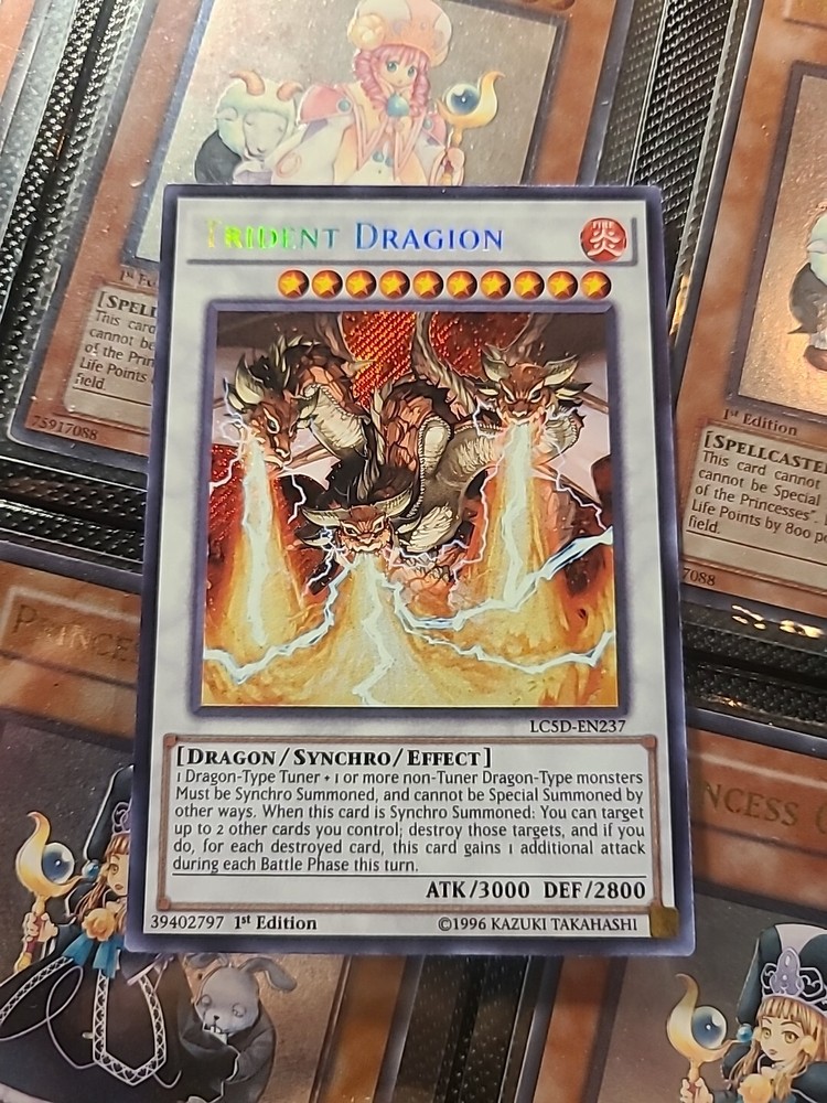 The Trident Dragion LC5D-EN237 is a Secret Rare card from the Legendary Collection 5D's set of the Yu-Gi-Oh! TCG. It is an Effect/Synchro type card with an attack power of 3000 and a defense toughness...
