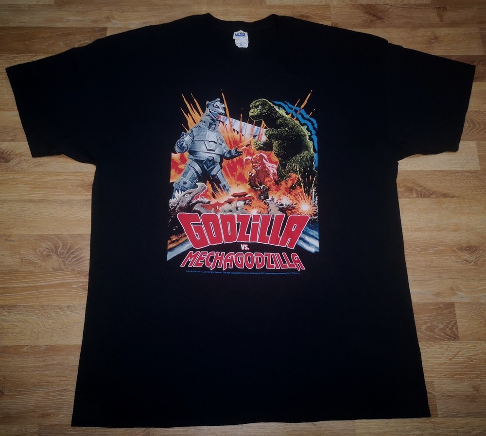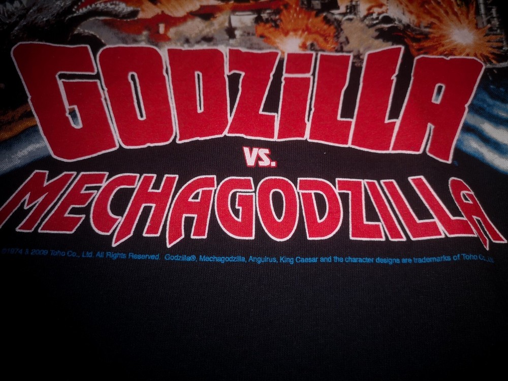 Rare! True Vintage OG y2k 2000's The Legendary American Monster Film Official Godzilla vs Mechagodzilla Movie Gojira 2009 Licenced By Toho Co. Ltd King of the Monsters! Anguirus King Caesar Promo T Shirt Please noted that this t shirt is a true vintage / used / pre-owned. Don't expect the item condition to be like new. There are minimal signs of worn. No obvious holes, stains or flaws spotted. Overall still in very good vintage condition. Please refer pictures attached for more details on the shirt. Anvil Tag. 100% Cotton. Size Extra Large On Tag. Armpit to Armpit 23.5". Shoulder to Bottom 31". Shoulder 24". Sleeve Length 7.5". Hem 23.5". Made In Nicaragua. $55 OR BEST OFFER Anime Marvel Ghost In Sci Fi Full Print All Over Print Fifth Column OG Roger Corman Supreme 80's Ripper Zorlac Pushead Skate Asylum Rat Bones Birdhouse Blind Bitch Hooks up Santa Cruz Stussy Rodney Mullen 80's 90's Joker Superman Predator Aliens Frank Miller Superheroes Marvel Anime Jack Nicholson The Dark Night Stanley Desantis Penguin Pee Wee Jim Carey Akira Ghost in the Shell Evangelion Neon Genesis Warner Bros Fashion Victim Supreme Astro Boy Cowboy Bebop Samurai Champloo Princess Mononoke Serial Experiments Lain Ones Dragon Ball Sailormoon Street Fighter Anime Movie Japanese Manga Sonic X Sonic Underground Sonic Boom Acme Mosquitohead Fifth Column 5th Column Raptee Hip Hop Rap Tupac Shakur 2pac TLC Stanley Desantis Raptee Black Bart Nike air Jordan Natural Born Killers Titanic Raptee The Simpsons Krusty Flakes 1990 20th Century Fox F.C. MNFG Changes Queens, NY Cartoon Network Warner Bros Marvel Pikachu Anime Charizard Squirtle Vintage 90's Apple Windows