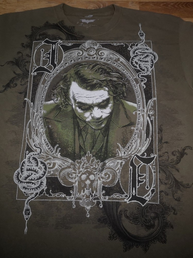 True Vintage OG y2k 2000's Batman The Dark Knight Film Iconic Joker Pocker Card Villains Potrait 2008 DC Comics Inc. Official Movie Promo T Shirt Please noted that this t shirt is a true vintage / used / pre-owned. Don't expect the item condition to be like new. There are signs of worn. Slightly faded army green color t shirt. Discoloration spotted. Please refer pictures attached for more details on the shirt. The Dark Knight DC Comics Official Tag. 100% Cotton. Size Large On Tag. Armpit to Armpit 22". Shoulder to Bottom 29". Shoulder 20.5". Sleeve Length 8.5". Hem 22". Made In Mexico. $55 OR BEST OFFER Anime Marvel Ghost In The Shell Skinhead Punk Oi Full Print All Over Print Fifth Column OG Roger Corman Supreme 80's Ripper Zorlac Pushead Skate Asylum Rat Bones Birdhouse Blind Bitch Hooks up Santa Cruz Stussy Rodney Mullen 80's 90's Joker Superman Predator Aliens Frank Miller Superheroes Marvel Anime Jack Nicholson The Dark Night Stanley Desantis Penguin Pee Wee Jim Carey Akira Ghost in the Shell Evangelion Neon Genesis Warner Bros Fashion Victim Supreme Astro Boy Cowboy Bebop Samurai Champloo Princess Mononoke Serial Experiments Lain Ones Dragon Ball Sailormoon Street Fighter Anime Movie Japanese Manga Sonic X Sonic Underground Sonic Boom Acme Mosquitohead Fifth Column 5th Column Raptee Hip Hop Rap Tupac Shakur 2pac TLC Stanley Desantis Raptee Black Bart Nike air Jordan Natural Born Killers Titanic Raptee The Simpsons Krusty Flakes 1990 20th Century Fox F.C. MNFG Changes Queens, NY Cartoon Network Warner Bros Marvel Pikachu Anime Charizard Squirtle Vintage 90's Apple Windows