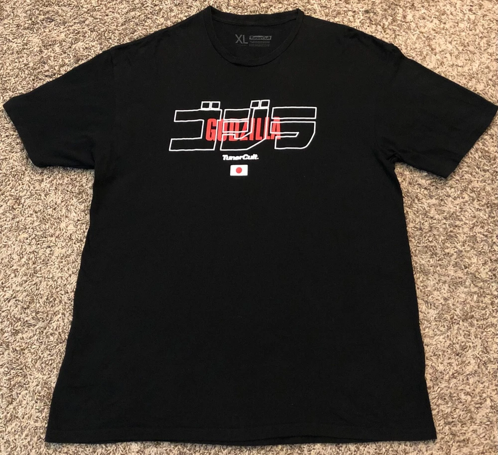 Tuner Cult Official Godzilla Script Men's Black T-Shirt Size XL. Approximate Measurements: Armpit to Armpit-22.5" Top of Collar to Bottom-30.5"