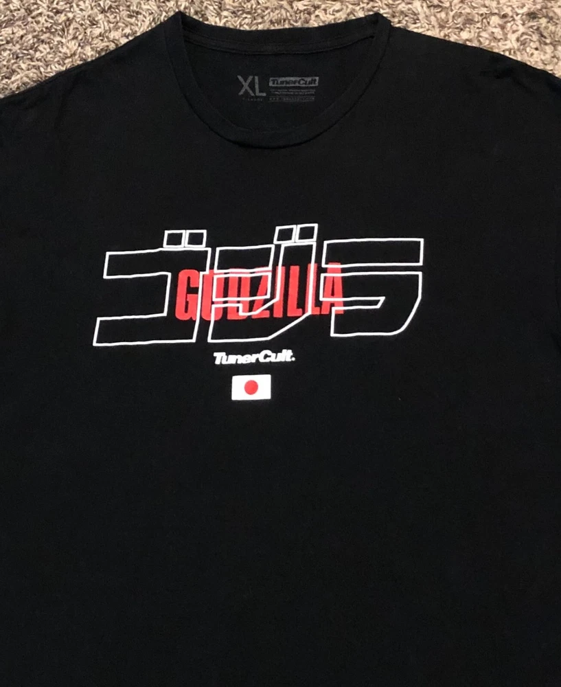 Tuner Cult Official Godzilla Script Men's Black T-Shirt Size XL. Approximate Measurements: Armpit to Armpit-22.5" Top of Collar to Bottom-30.5"...
