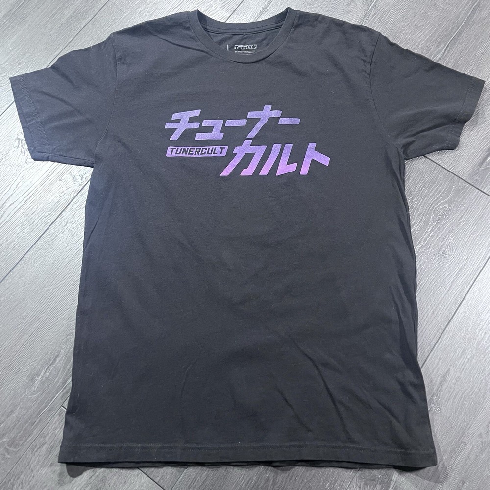 Tuner Cult T Shirt Mens Large Black Japanese Godzilla GTR Purple Spell Out Print In very good condition. Tagged Large . Measured PTP 20", Chest 40", Overall Length 29". Please refer to the "condition/description" for item condition. Actual measurements can be different from the tag. This may be due to potential shrinkage, stretching, hemming, or manufacturer error. PLEASE REVIEW ALL PICTURES FOR MEASUREMENTS AND CONDITION. How to evaluate measurements in pictures. Waist or Chest (PTP) - The flat measurement is doubled (i.e. The waist measurement is 15 inches. The Measurement we evaluate against the tag would be 30". Same goes for PTP measurements. Inseam - We measure the inseam of the pants or shorts from the connection point where the crotch of the pants is down to the bottom cuff. We ship items out Multiple times a week. All items have been cleaned per standards & policies