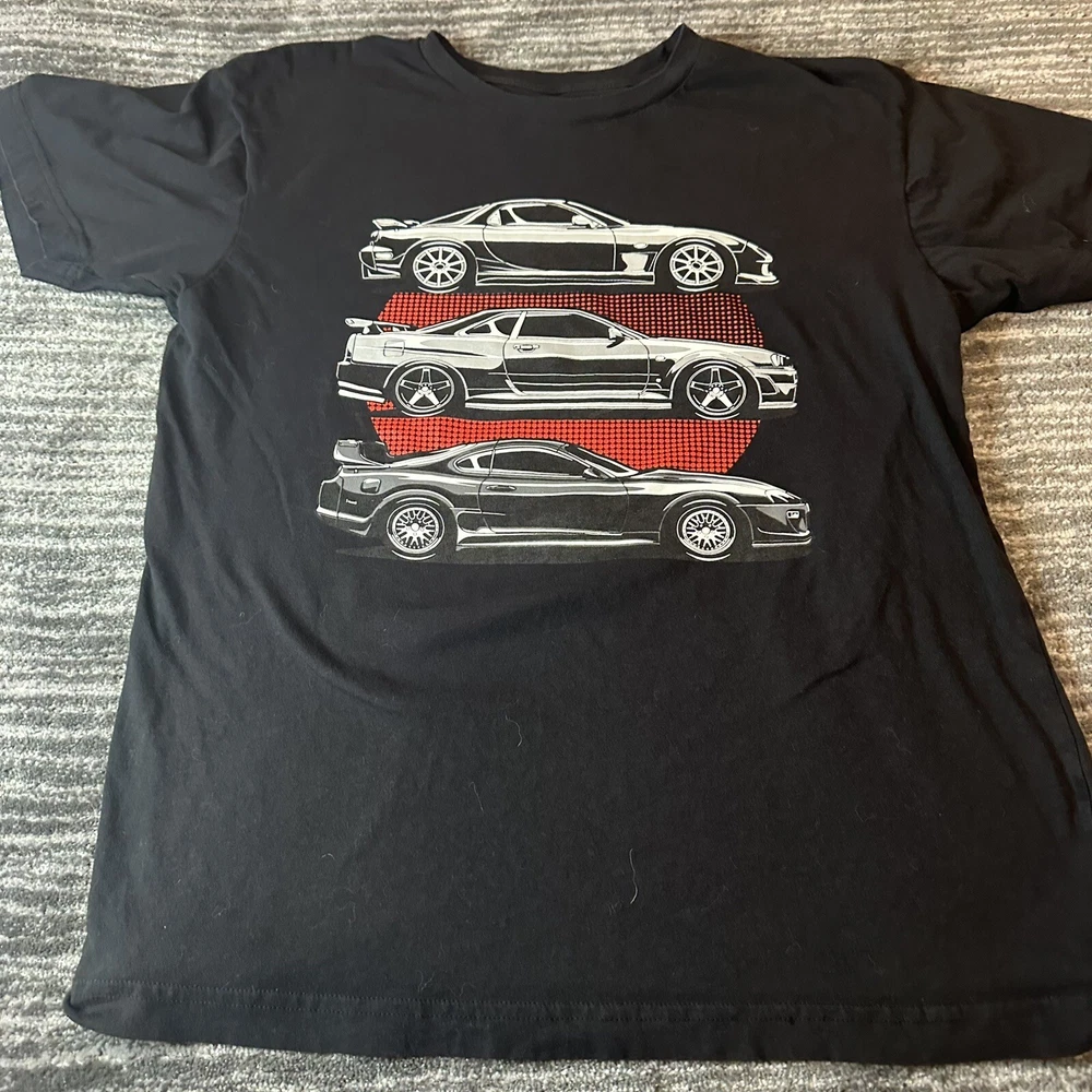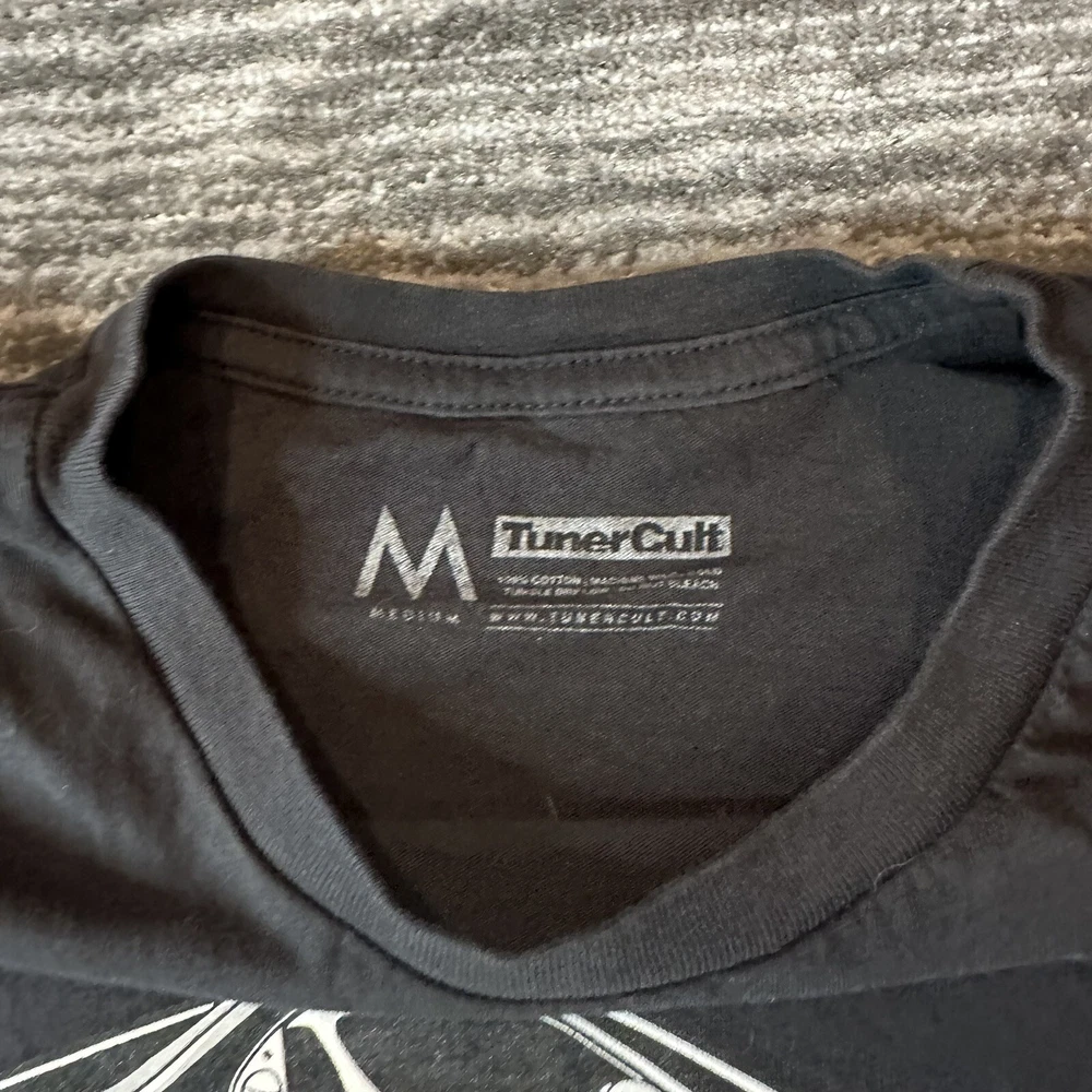 This Turner Cult shirt is the ultimate addition to any car enthusiast's wardrobe. With a solid pattern, crew neckline, and short sleeves, this black t-shirt in size M is perfect for summer, fall, and spring. The logo accents and 3 racing car and a sun in the background. Ideal for men who love cars this t-shirt is perfect for casual outings or for attending car events. It is a great gift for your boyfriend, husband, or any man in your life. Get this amazing Turner Cult shirt today and show off your love for cars. Item is Preowned but in good condition with little signs of wear. No holes or stains. May have some over all fade due to washing. See pictures for details and measurements. Ships out fast! Ships daily from U.S. l bundle shipping with other items from my store upon request. eBay.com/str/nettsnook