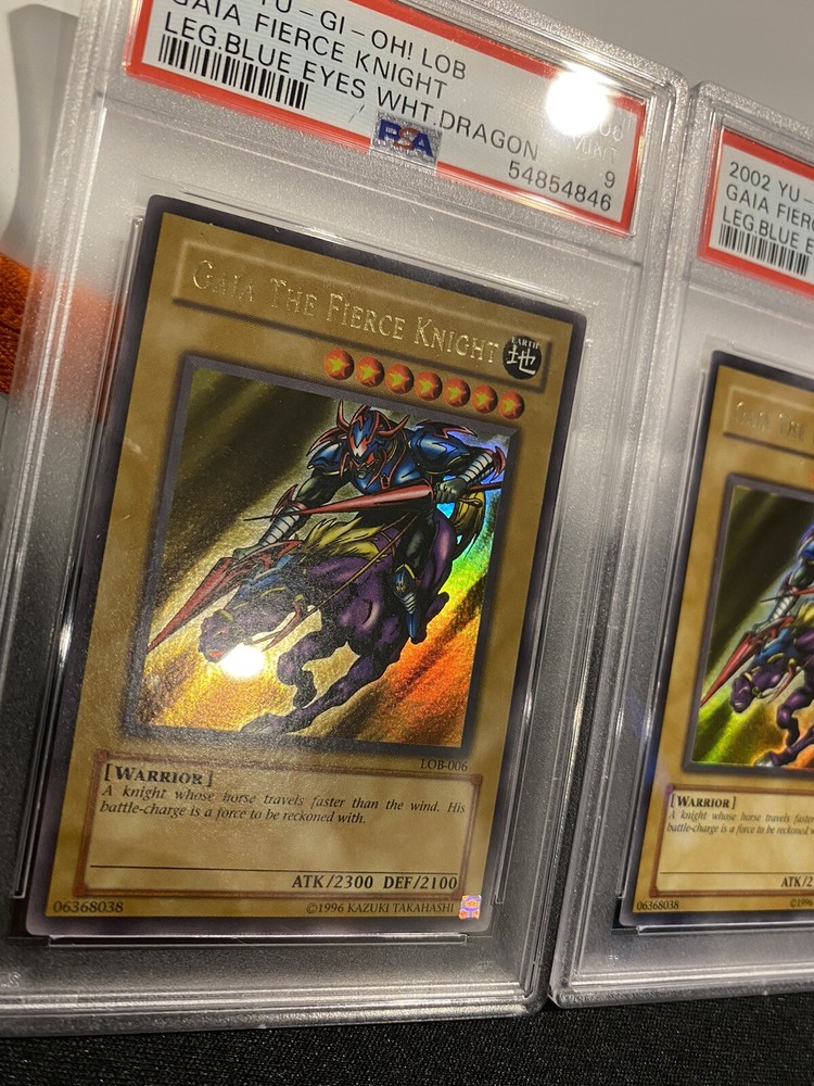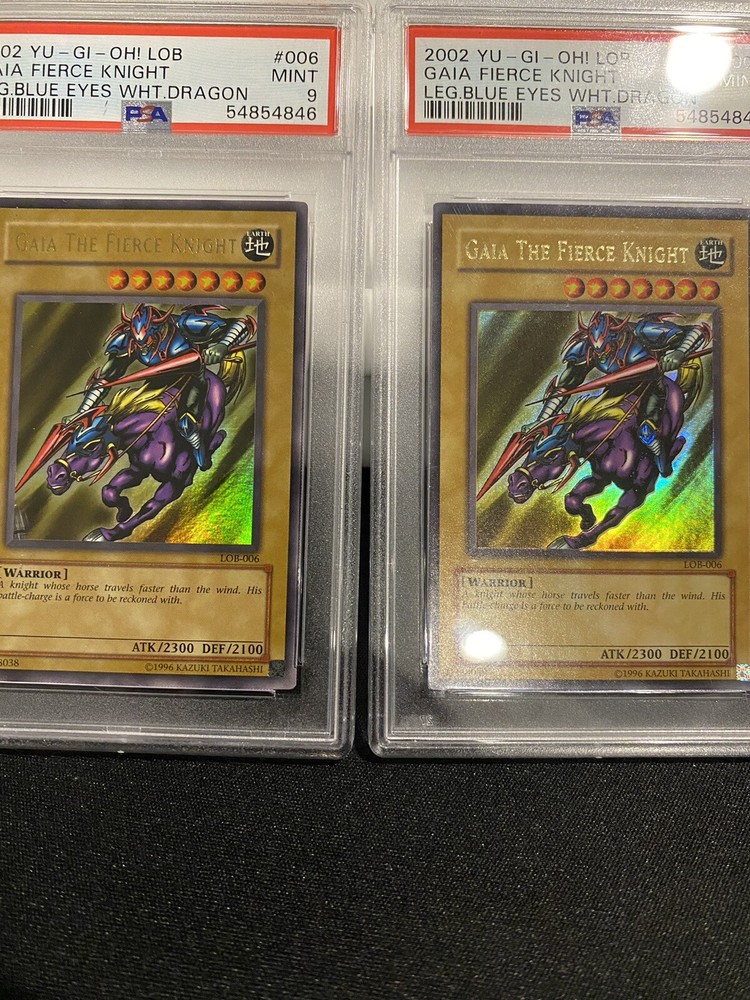 These back-to-back PSA 9 Gaia the Fierce Knight cards are a collector's dream! The consecutive grading numbers make them extra special, and the condition is flawless. Perfect for any serious Yugioh enthusiast looking to add a rare, high-quality piece to their collection. Absolutely worth it!