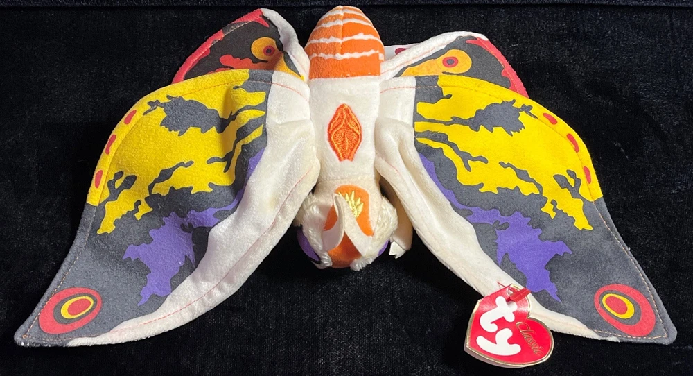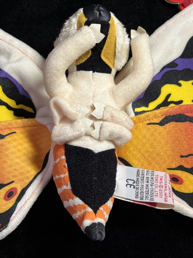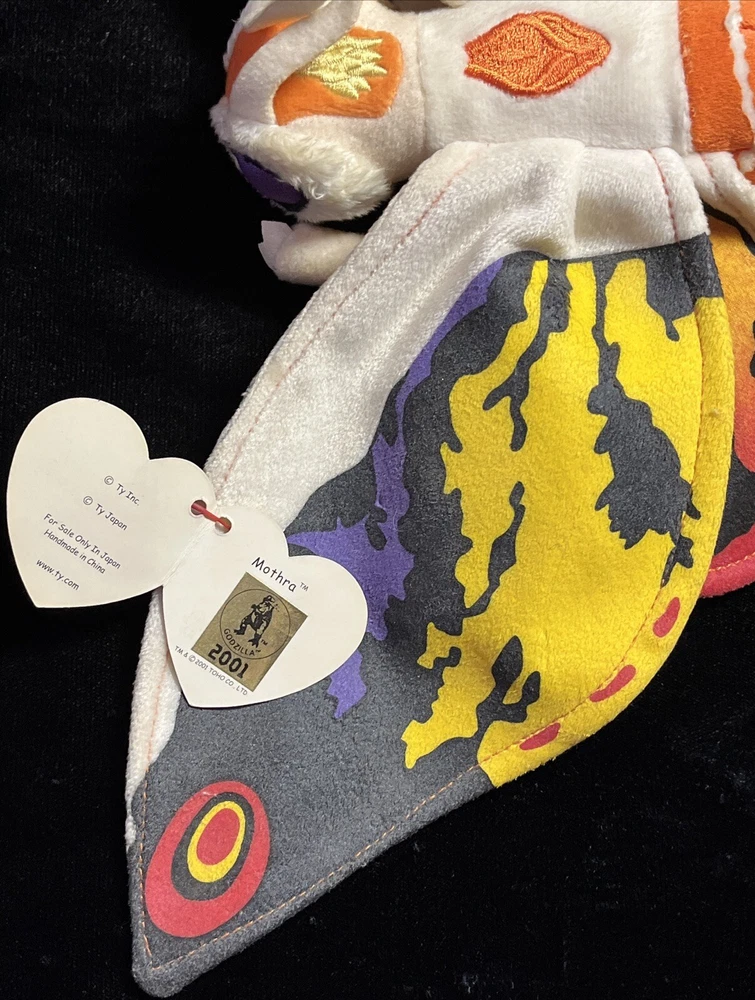 Incredible estate find. RETIRED 2001 JAPAN exclusive Godzilla movie MOTHRA. Absolutely gorgeous colors with original tags. Measures 11 1/2” wing span. Near mint to mint condition from storage. See photos for more details any questions please feel free to contact us. Check out our other 2001 TY Godzilla babies!