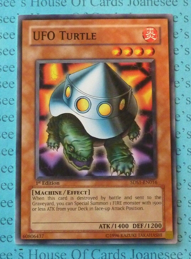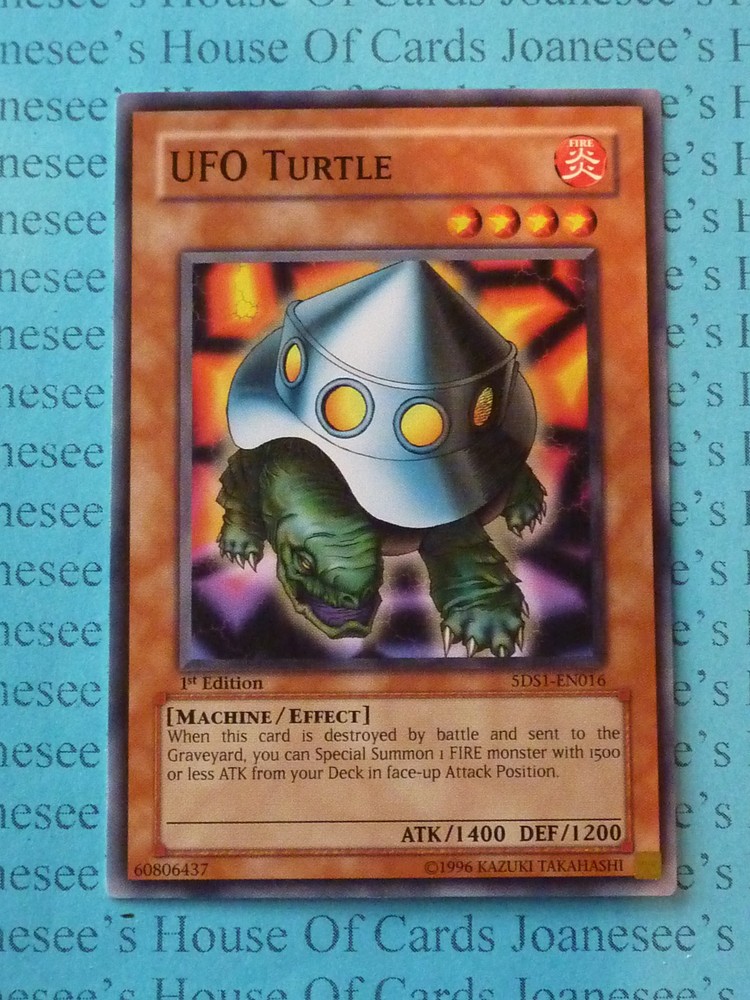 This is a Common Fire Machine UFO Turtle 4 Stars ATK/1400 DEF/1200 Card text: When this card is Summoned: Target 1 face-up monster your opponent controls; this card's ATK and DEF become equal to that monster's original ATK and DEF. 5DS1 -EN016 1st Edition English Mint/NMint Condition Totally Original Konami (or your money back!) I will deliver in safe packaging to keep it in perfect condition. Ideal for players and collectors alike. Check out my other items! I will combine postage costs for multiple purchases. Sign up for my email newsletters by adding my eBay Shop to your favourites