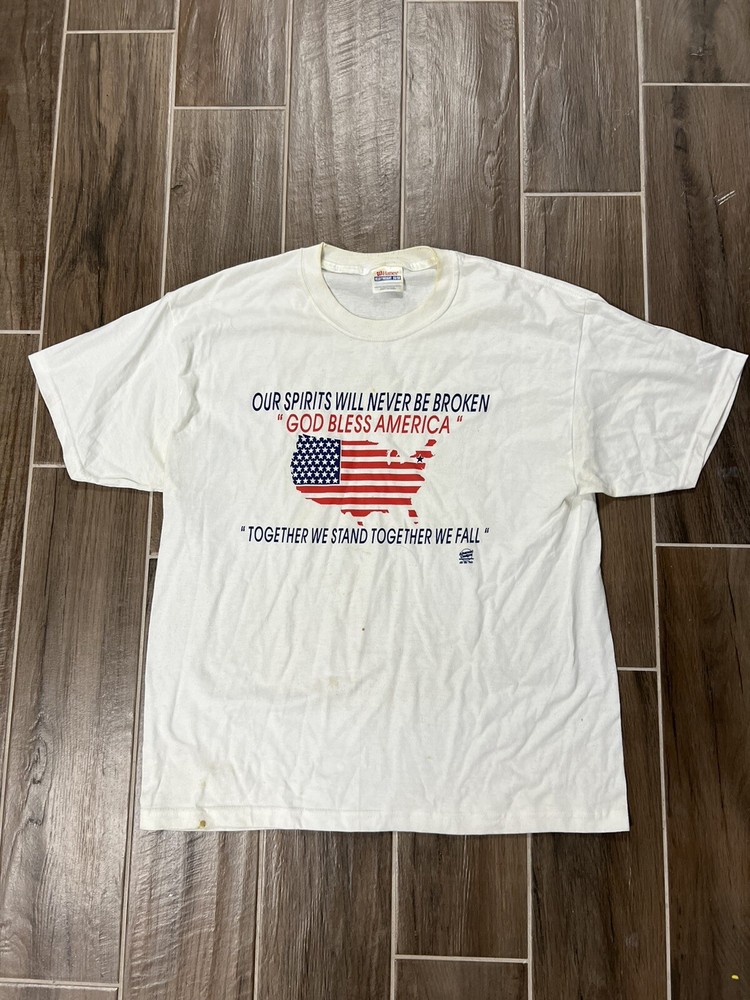 THE ANSWER IS "YES, WE DO COMBINE SHIPPING!" THE MORE YOU BUY THE MORE YOU WILL SAVE. PLEASE CHECK OUT THE REST OF OUR STORE AND ADD TO YOUR ORDER. WE WILL SEND A COMBINED INVOICE ONCE YOU LET US KNOW YOU ARE DONE SHOPPING. If there are any questions, please message us. What you see is what you get! The picture you see is actually what you are bidding on. No bait and switch here. We treat people the way we would like to be treated. We love what we do and know what we are doing. Our feedback is awesome so rest assured you will get what you pay for and fast. We ship out the day of or the next day after we receive payment Vintage USA 90s Our Spirits Will Never Be Broken America T-Shirt Size L STAINS.
