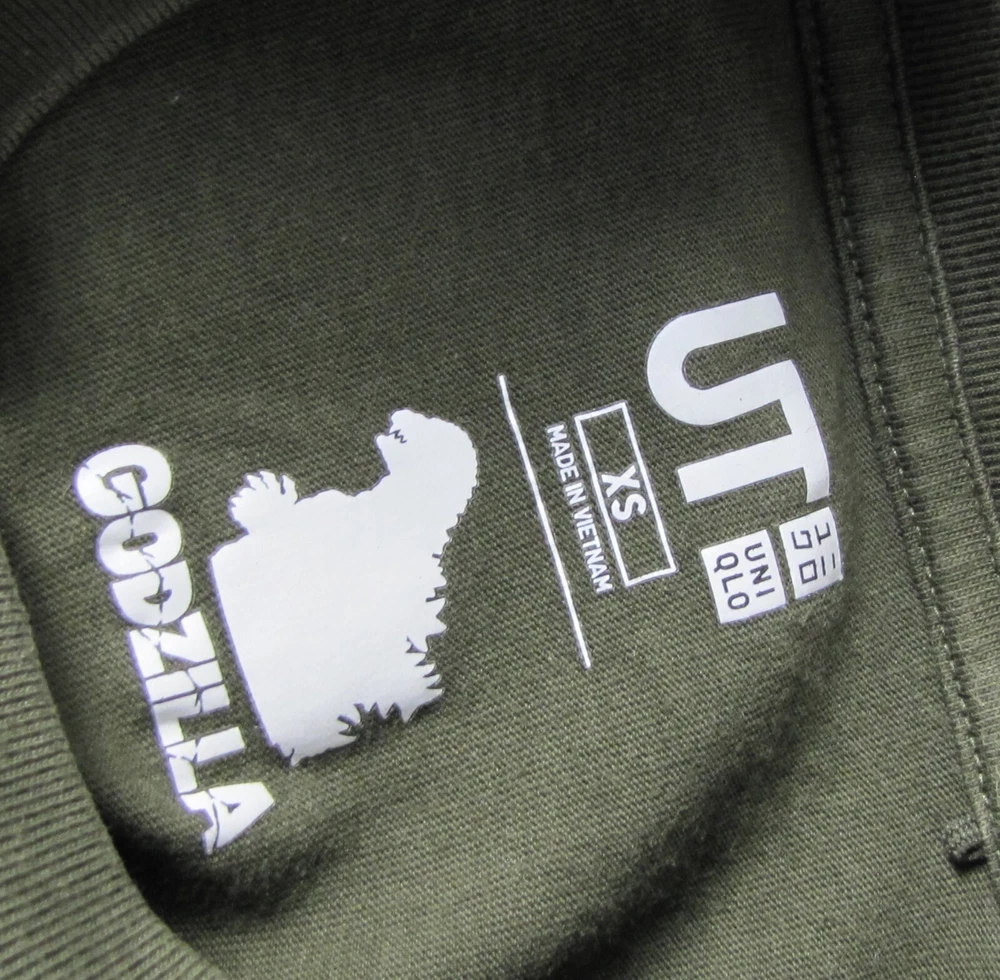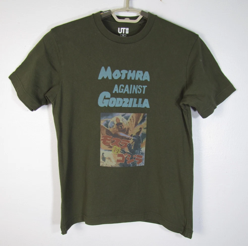 Uniqlo X Nintendo Green Cotton with Godzilla against Mothra Graphic T Shirt Size XS This measures from underarm to underarm about 18.5" Center Back Length is about 24"