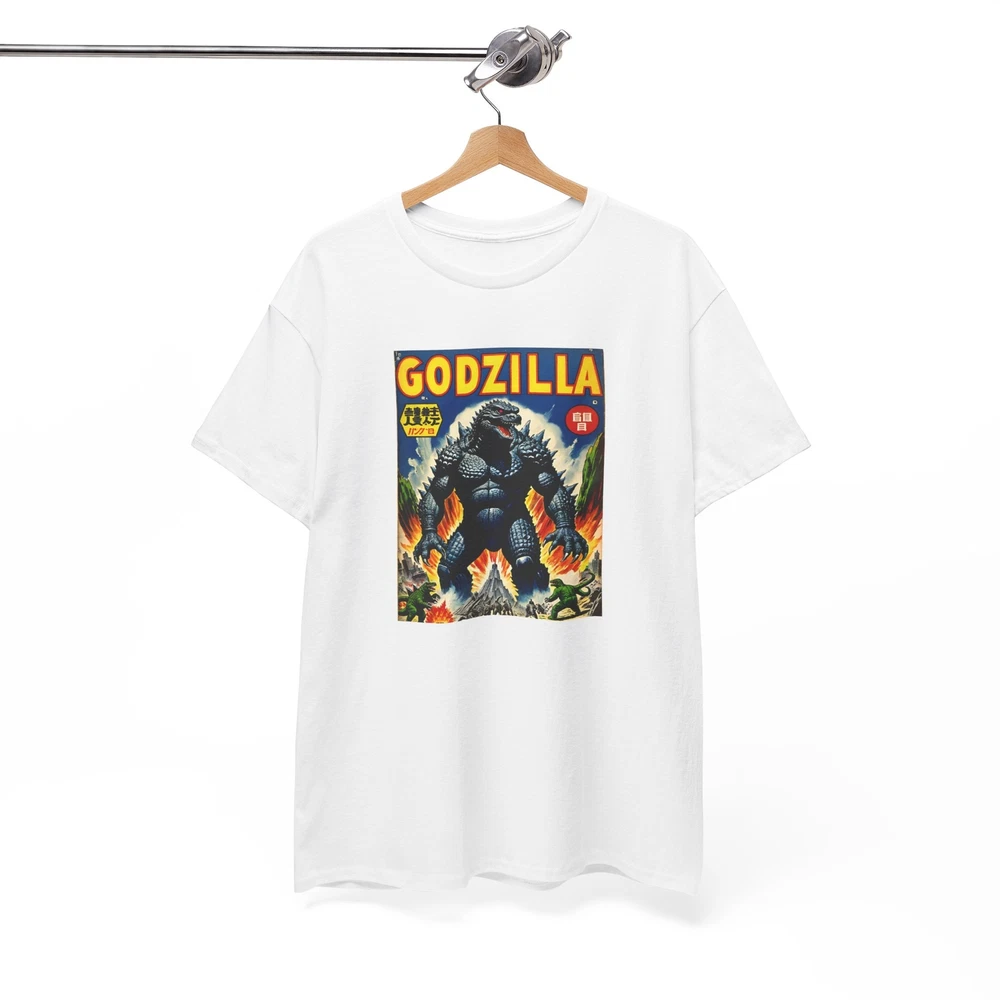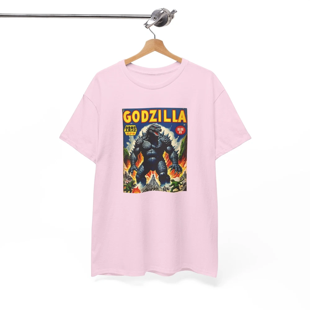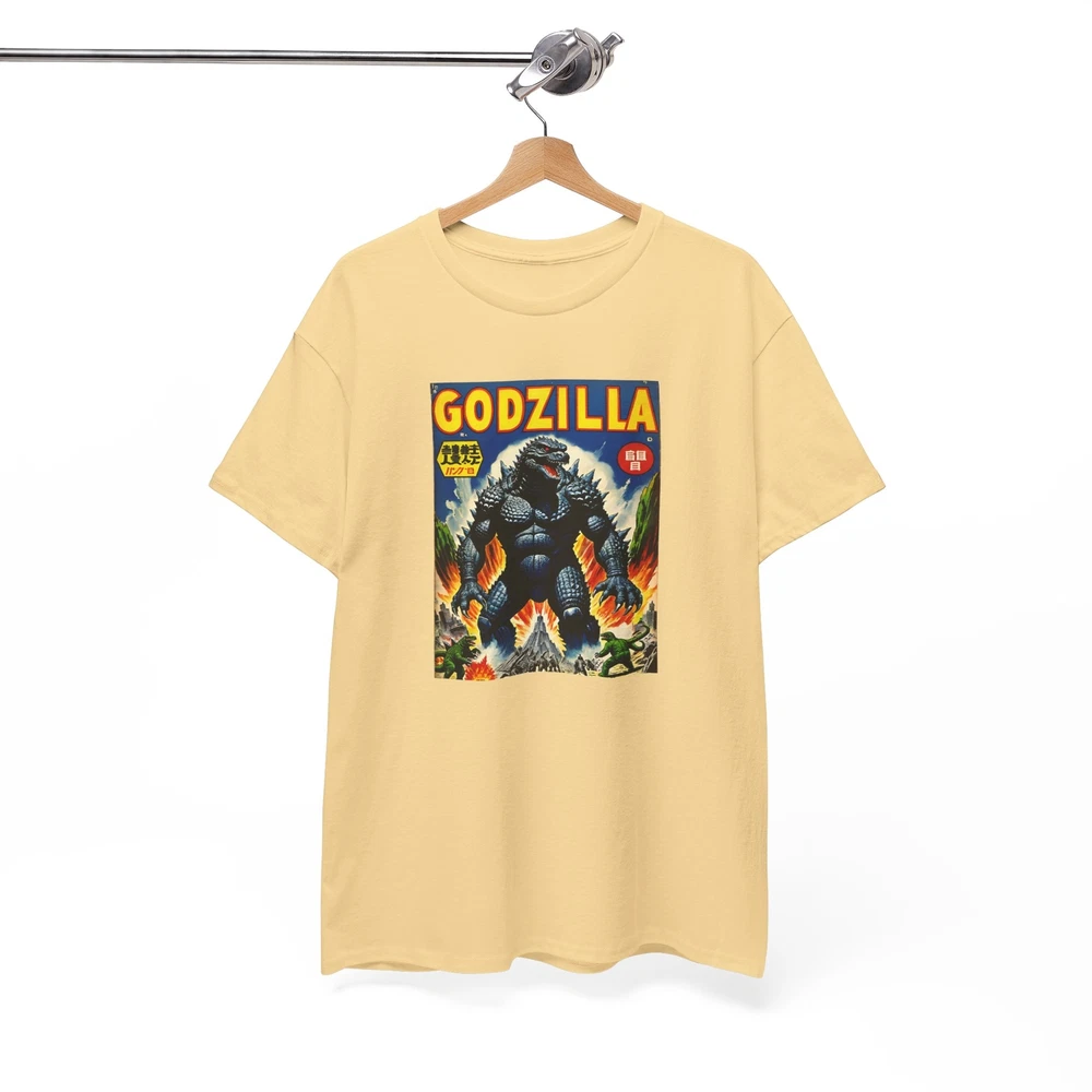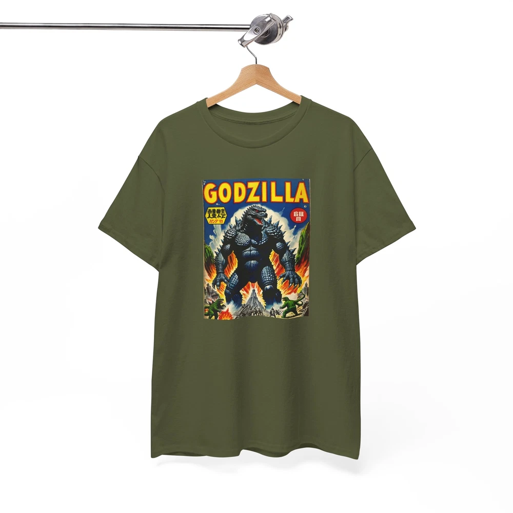 Unisex Cool Graphic Tee Japanese Godzilla Comic shirt, funny shirt, cool shirt The unisex heavy cotton tee is the basic staple of any wardrobe. It is the foundation upon which casual fashion grows. The specially spun fibers provide a smooth surface for premium printing vividity and sharpness. No side seams mean there are no itchy interruptions under the arms. The shoulders have tape for improved durability. .: Made with medium fabric (5.3 oz/yd² (180 g/m²)) consisting of 100% cotton for year-round comfort that is sustainable and highly durable. .: The classic fit of this shirt ensures a comfy, relaxed wear while the crew neckline adds that neat, timeless look that can blend into any occasion, casual or semi-formal. .: The tear-away label means a scratch-free experience with no irritation or discomfort whatsoever. .: Made using 100% US cotton that is ethically grown and harvested. Gildan is also a proud member of the US Cotton Trust Protocol ensuring ethical and sustainable means of production. This blank tee is certified by Oeko-Tex for safety and quality assurance.
