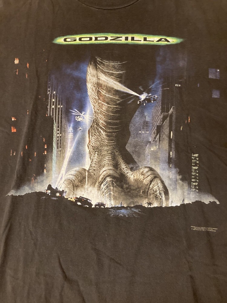 RARE 1998 GODZILLA PROMO SHIRT FEATURING SONY VAIO SLIM NOTEBOOK ON THE BACK. SIZE DOES MATTER. Shirt has some light spots on the back as indicated in the photos. No holes or rips. Stock #1845