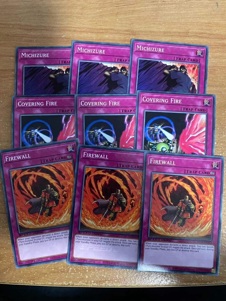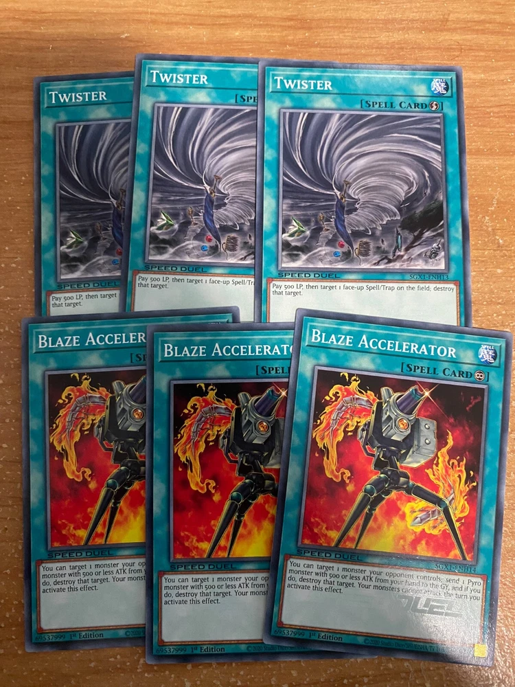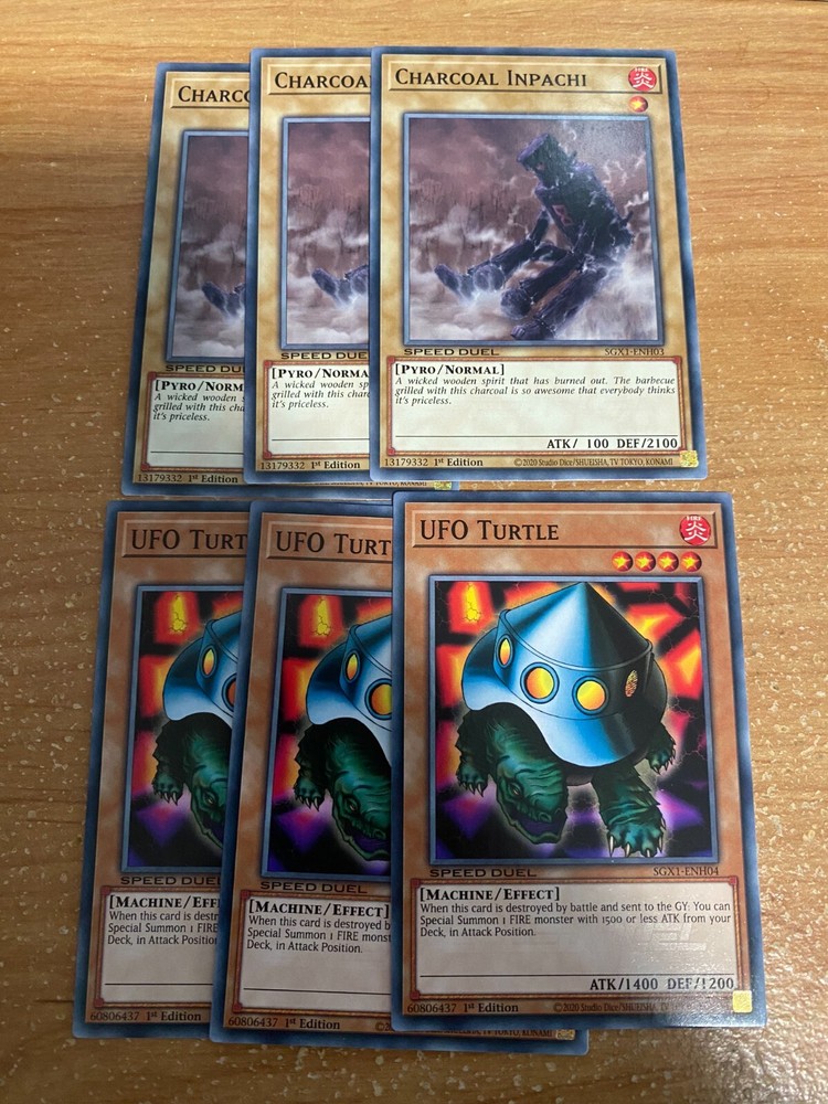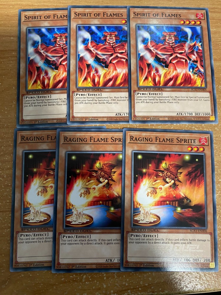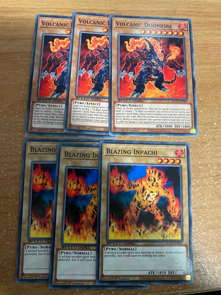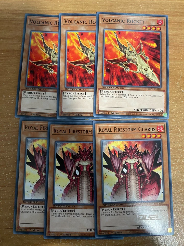 π₯VOLCANIC DECK CORE 57 CARDS TOTAL - SGX1 - SPEED DUEL GX BOX - YUGIOH SGX1-ENH01 " Volcanic Doomfire " Common Effect Monster Speed Duel debut 3 SGX1-ENH02 " Blazing Inpachi " Common Normal Monster Speed Duel debut 3 SGX1-ENH03 " Charcoal Inpachi " Common Normal Monster Speed Duel debut 3 SGX1-ENH04 " UFO Turtle " Common Effect Monster Speed Duel debut 3 SGX1-ENH05 " Spirit of Flames " Common Effect Monster Speed Duel debut 3 SGX1-ENH06 " Raging Flame Sprite " Common Effect Monster Speed Duel debut 3 SGX1-ENH07 " Volcanic Shell " Common Effect Monster Speed Duel debut 3 SGX1-ENH08 " Volcanic Blaster " Common Effect Monster Speed Duel debut 3 SGX1-ENH09 " Volcanic Hammerer " Common Effect Monster Speed Duel debut 3 SGX1-ENH10 " Volcanic Rocket " Common Effect Monster Speed Duel debut 3 SGX1-ENH11 " Royal Firestorm Guards " Common Effect Monster Speed Duel debut 3 SGX1-ENH12 " Salamandra " Common Equip Spell Speed Duel debut 3 SGX1-ENH13 " Twister " Common Quick-Play Spell Reprint 3 SGX1-ENH14 " Blaze Accelerator " Common Continuous Spell Speed Duel debut 3 SGX1-ENH15 " Tri-Blaze Accelerator " Common Continuous Spell Speed Duel debut 3 SGX1-ENH16 " Wild Fire " Common Quick-Play Spell Speed Duel debut 3 SGX1-ENH17 " Michizure " Common Normal Trap Reprint 3 SGX1-ENH18 " Covering Fire " Common Normal Trap Speed Duel debut 3 SGX1-ENH19 " Firewall " Common Continuous Trap Speed Duel debut 3