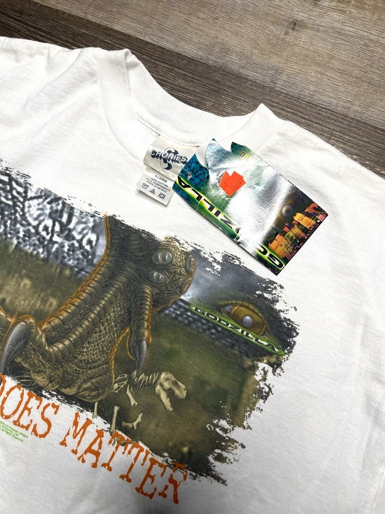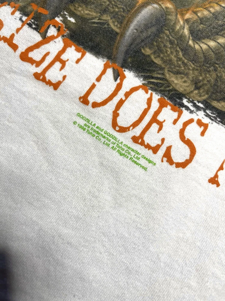 VTG 90s Godzilla Tri Star 1998 Movie Promo Tee T-Shirt Size Does Matter NWT Men Size: XL Chest: 23in Length: 30in Chronies Tag PLUS Godzilla Tags NWT Deadstock 100% Cotton, Made in Mexico Excellent Condition! FAST FREE 24 HOUR SHIPPING!!!!!!