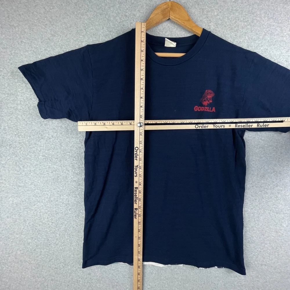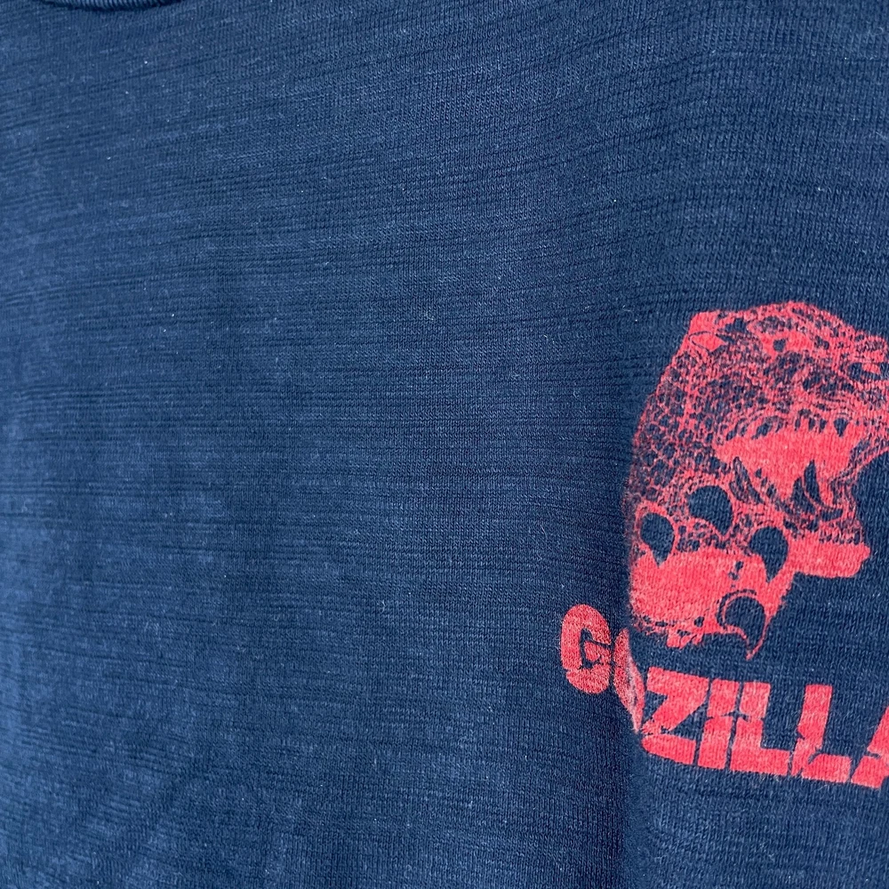 This is a 2 sided vintage rare godzilla t shirt. Shirt has a beautiful horizontal stripe texture to it that makes it feel premium. Please see the item photos for condition. Feel free to DM us with questions or concerns. We are alway happy to help. We would be happy to bundle shipping to save you money. Rerun Goods Co. recycles shipping materials to help the planet. You are doing your part by buying secondhand. Thank you for shopping our store! We would love to serve you again, so save,favorite,like our store and visit us again to see new items, listed regularly.