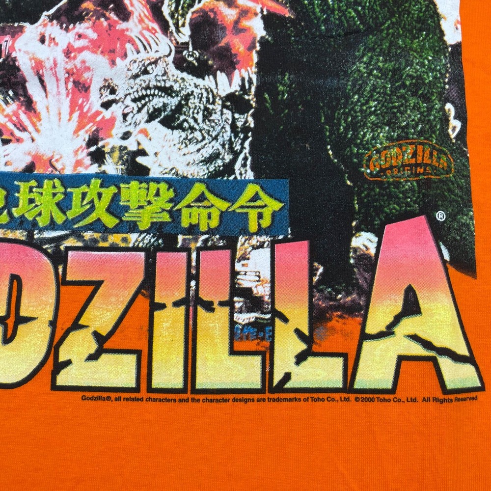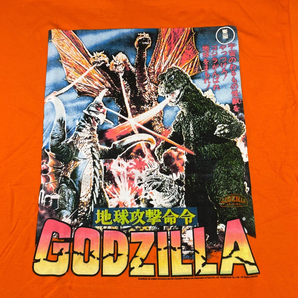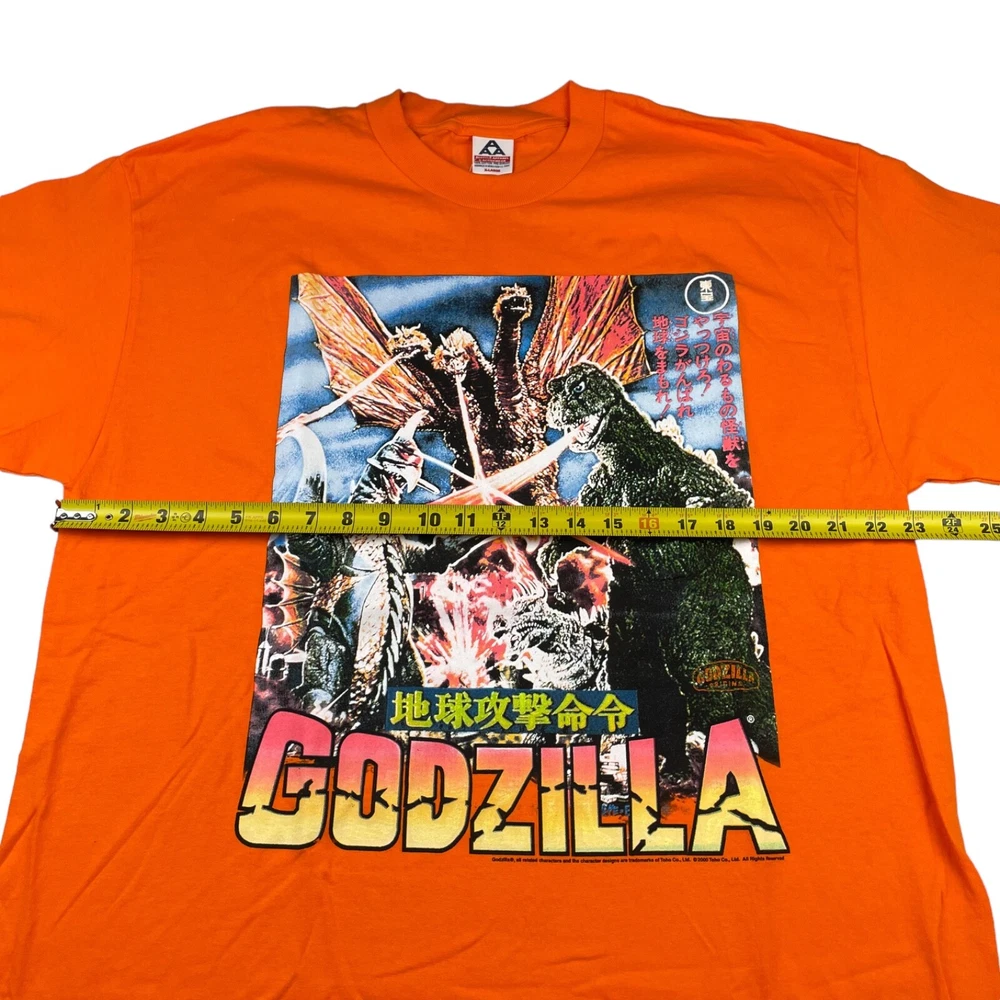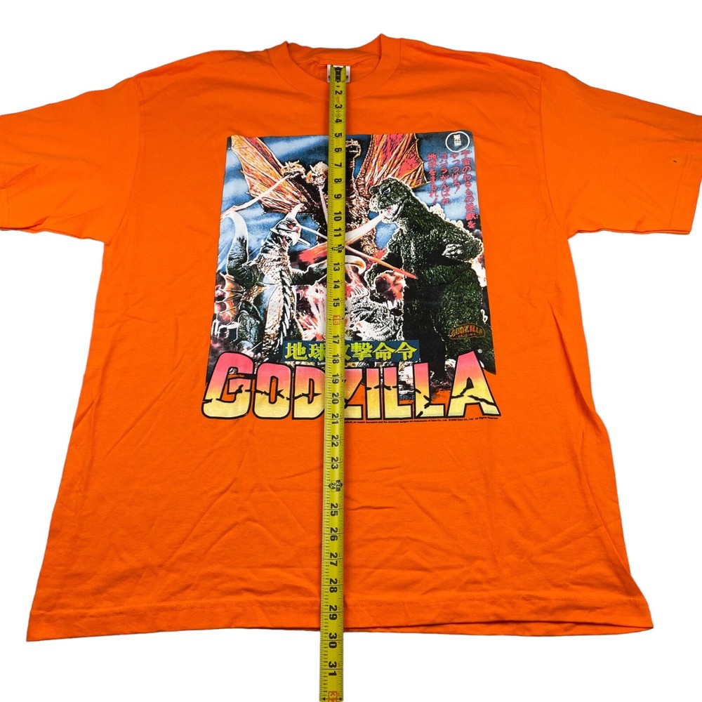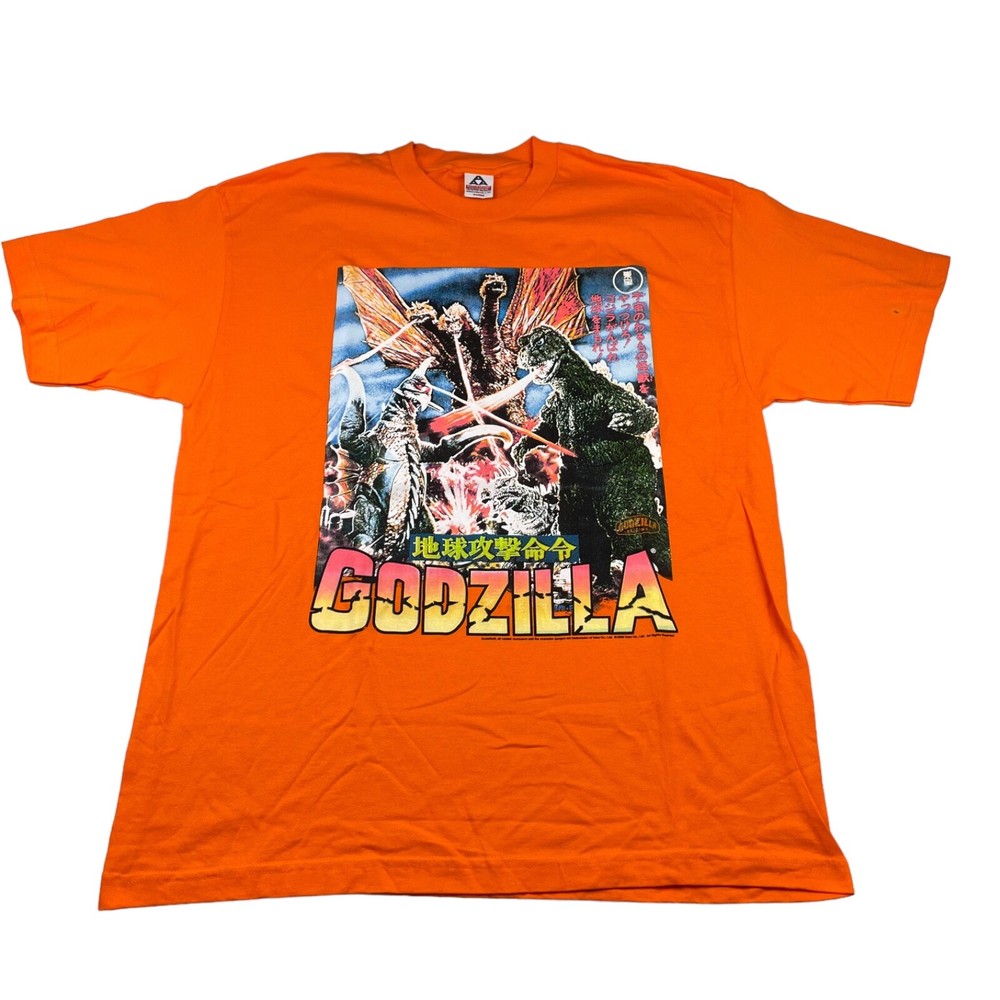 VTG NEW Godzilla Attacks Japan 2000 Y2K Men's T-Shirt • Size XL (see photos for exact measurements) • Orange • 100% Cotton • Short sleeve • No rips and smoke free • NEW without tags! Never worn! • Please note small spot on sleeve (see last photo for visual) • Please message with any questions