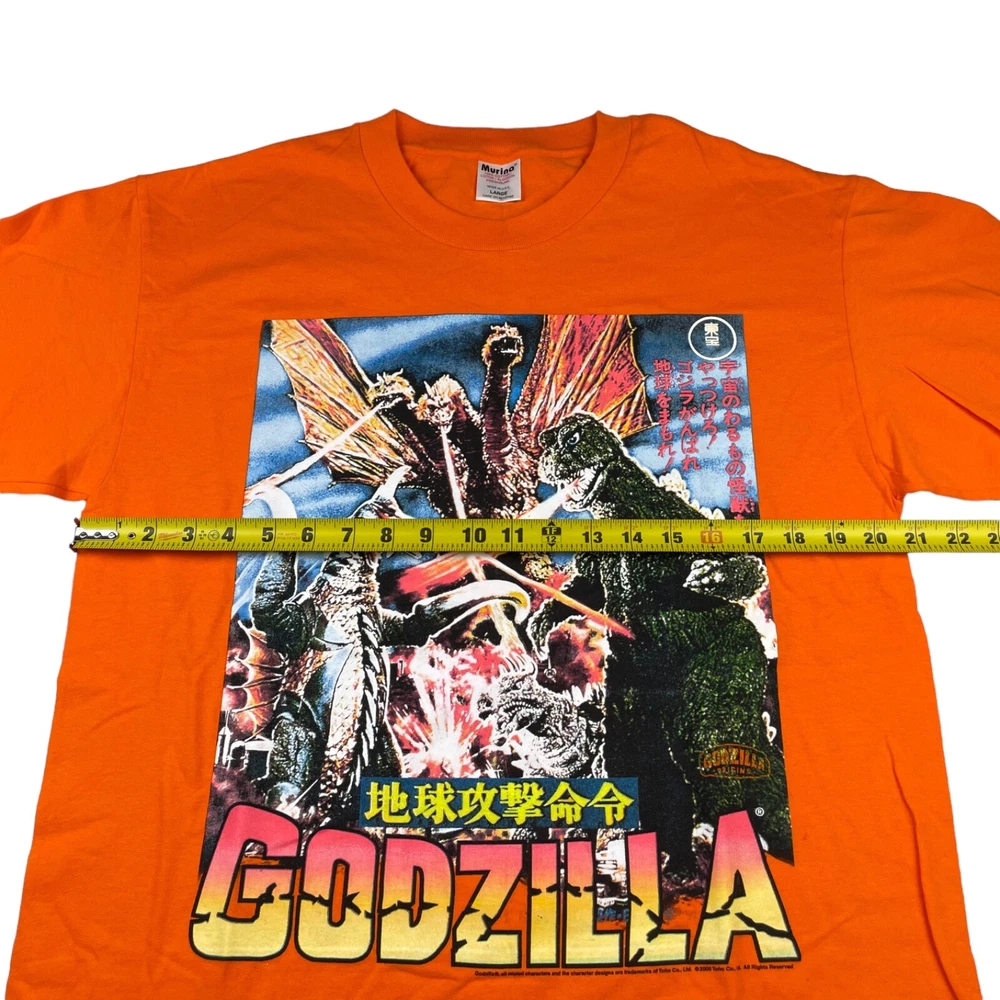 VTG NEW Godzilla Attacks Japan 2000 Y2K Men's T-Shirt • Size Large (see photos for exact measurements) • Orange • 100% Cotton • Short sleeve • No rips or stains and smoke free • NEW without tags! Never worn! • Please message with any questions