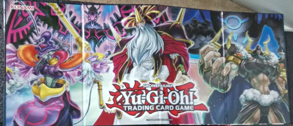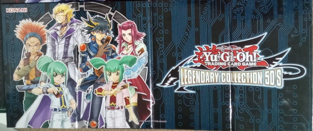 This vintage Yu-Gi-Oh playmat features the main characters from the 1996 Legendary Collection 5DS game boards by Konami. The multicolor table playmat is 23 3/4 inches long and 10 inches wide. It is a great addition to any Yu-Gi-Oh fan's collection, and perfect for playing the Yu-Gi-Oh Trading Card Game. This CCG playmat is designed with high-quality materials and is in excellent condition. Get your hands on this piece of Yu-Gi-Oh history today!