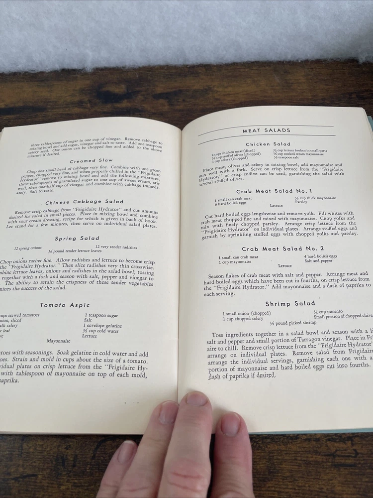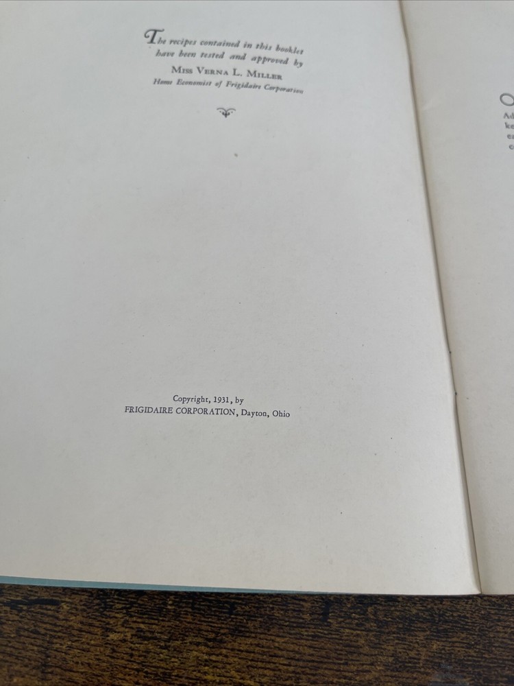 This vintage 1931 Frigidaire refrigerator recipe book is a charming addition to any collection of appliance memorabilia. The 48-page book features beautifully illustrated pages with recipes and tips for using your Frigidaire appliance. The green cover adds a pop of color to the book, making it a great addition to any shelf or kitchen. The book is an original piece, created in the United States in 1931, and is perfect for anyone interested in collectibles or vintage advertising. The Frigidaire brand is well-known for its quality and durability, and this recipe book is no exception. It's a great way to get a sense of the past and the evolution of kitchen appliances.